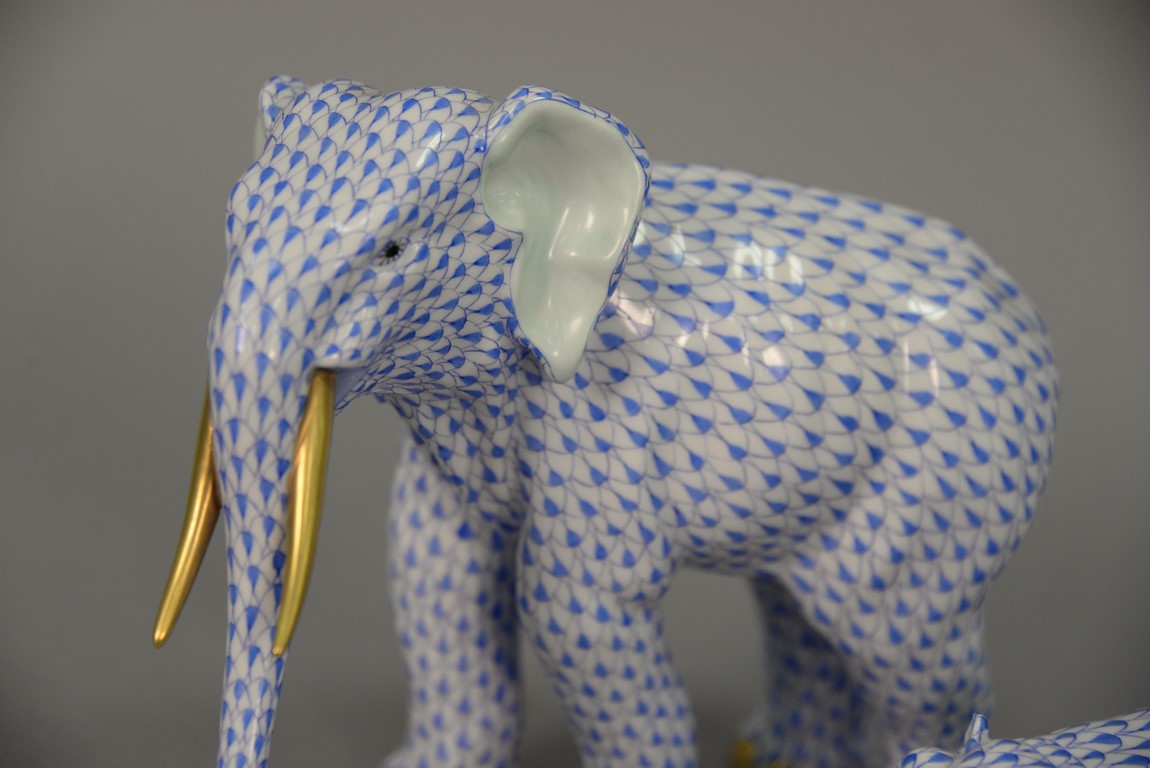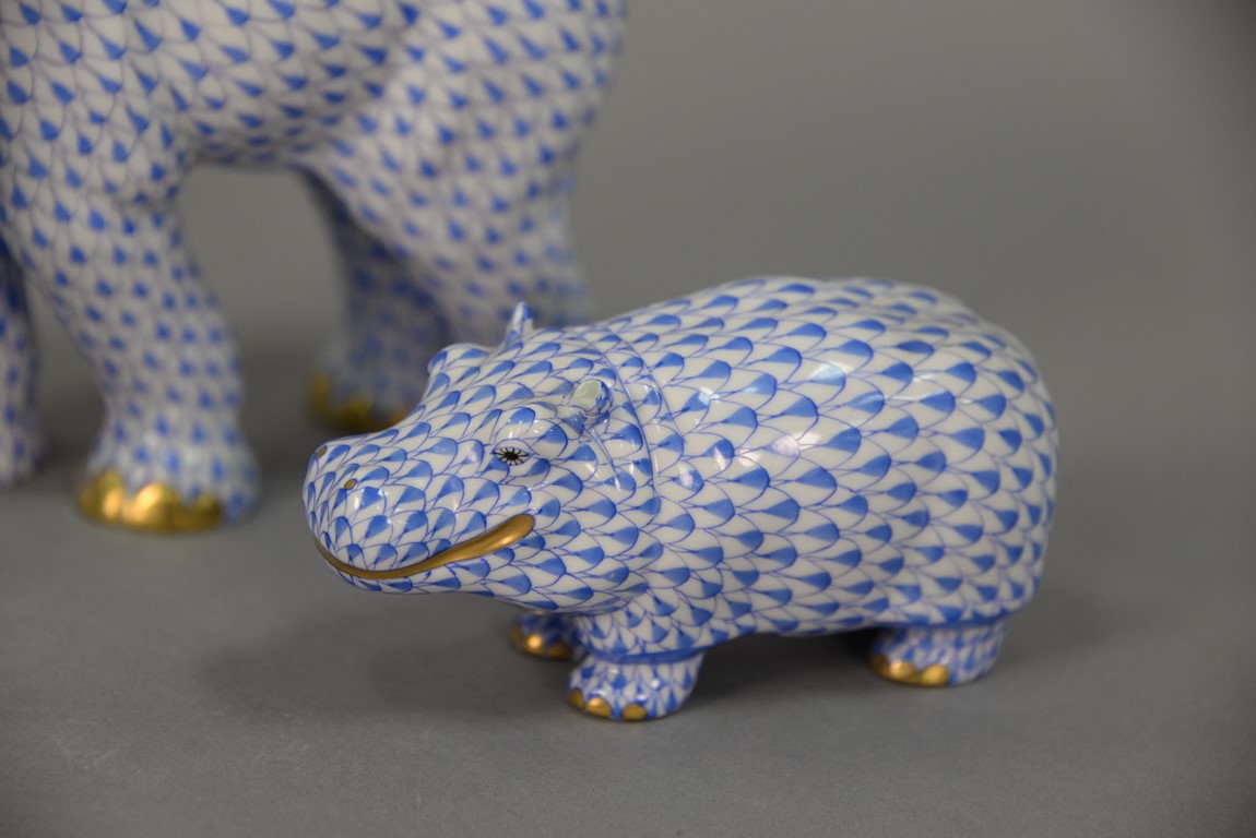 Lot 194: Two Herend animals including standing elephant #15265 and hippo 15337. elephant: ht. 12 in. hippo: ht. 2 1/2 in.