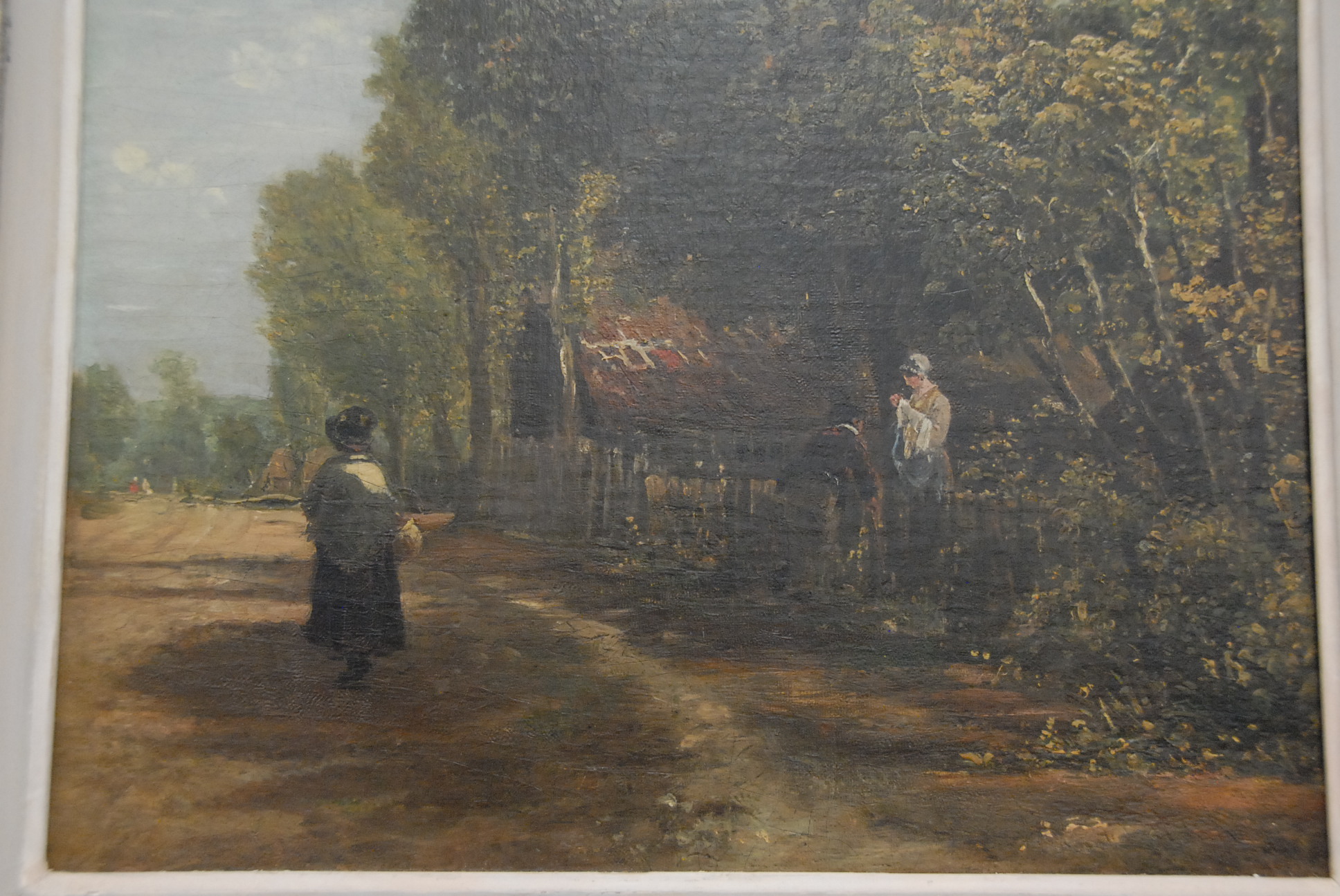 Lot 195: Attributed to William Turner COUNTRY ROAD LANDSCAPE oil on canvas unsigned restretched and relined 20 1/2 x 16