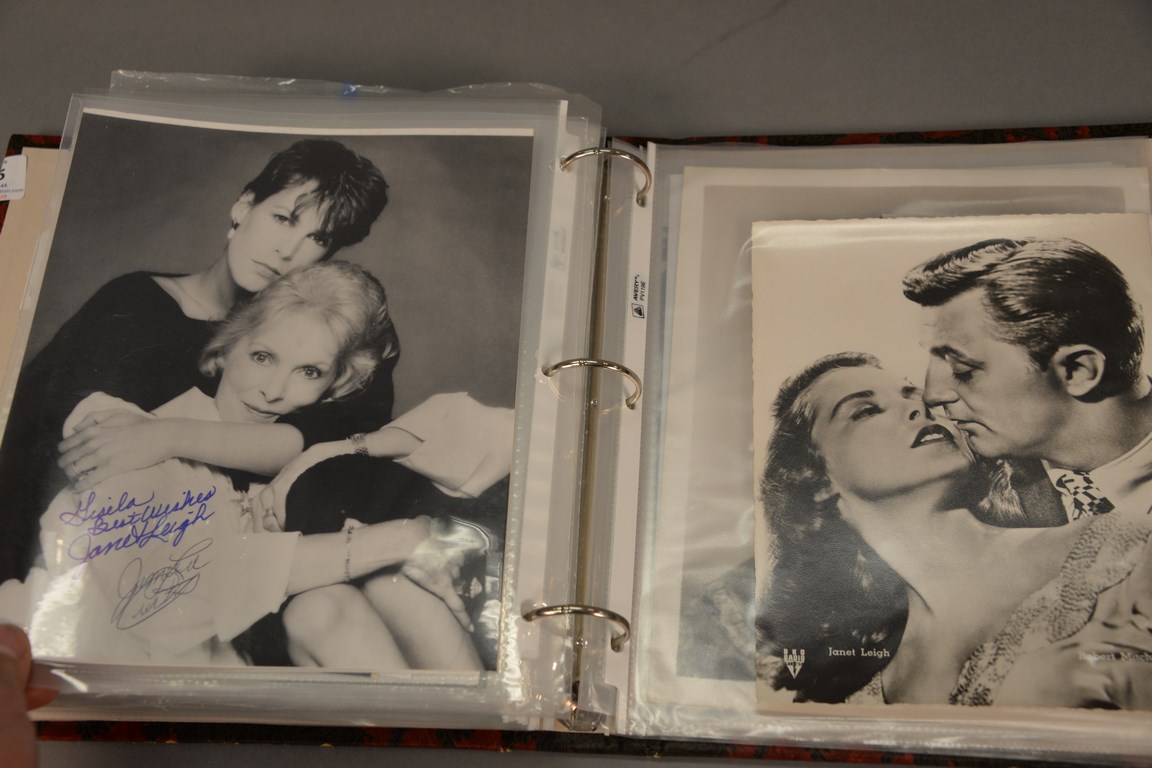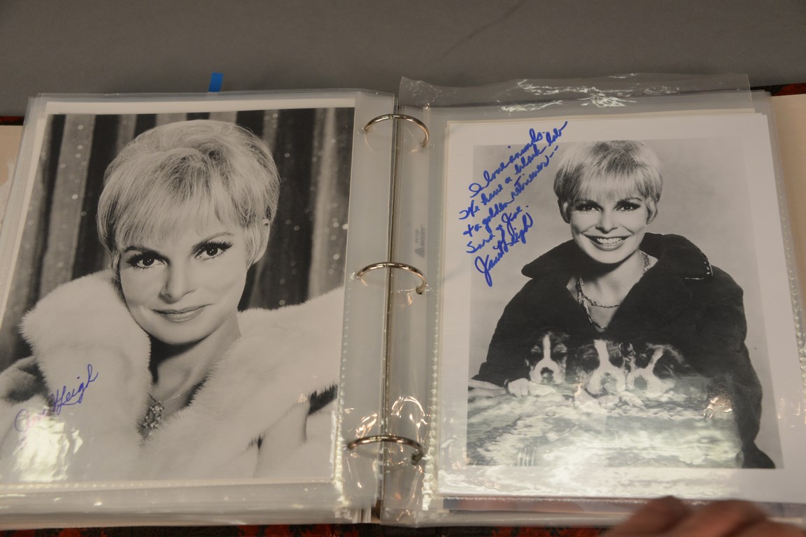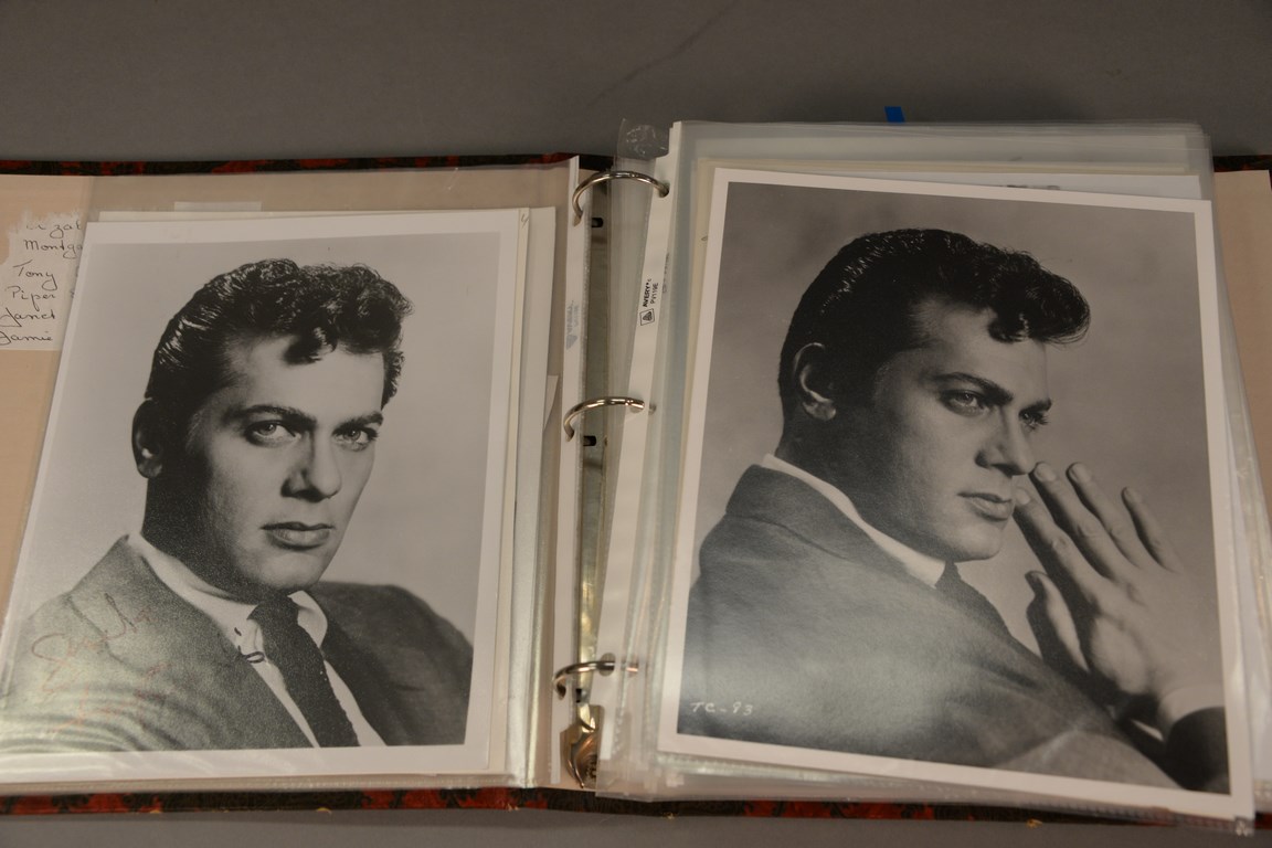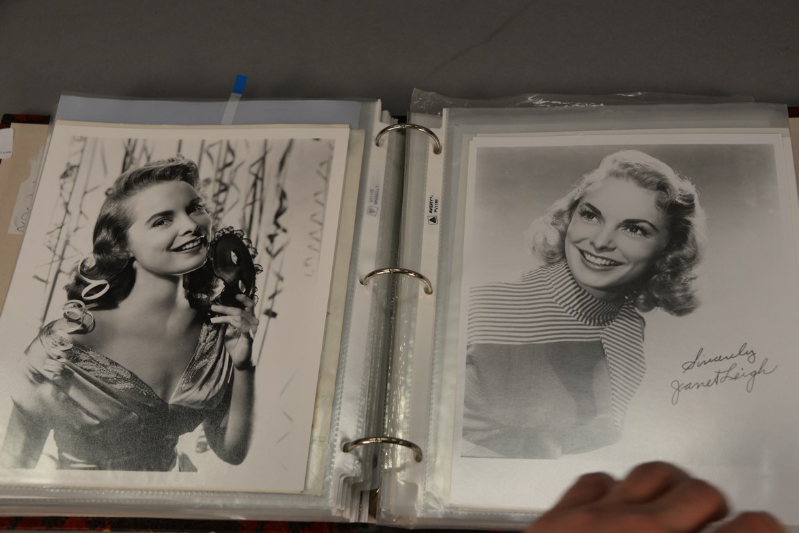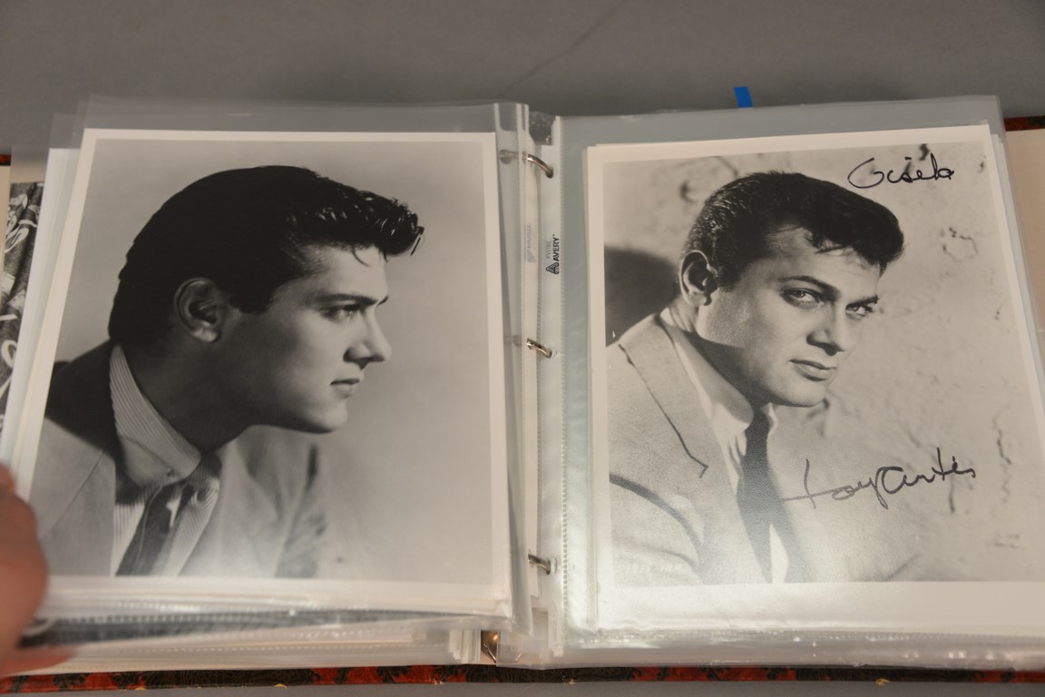 Binder full of signed and unsigned photographs of Tony Curtis and Janet Leigh, approximately 125 total, approximately 65 of them are signed.
