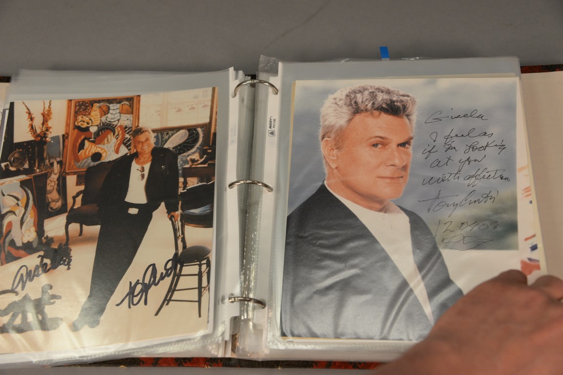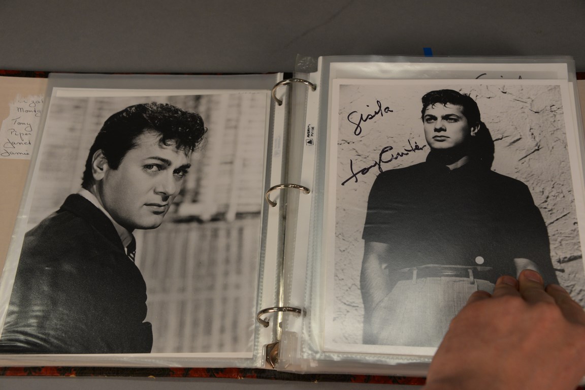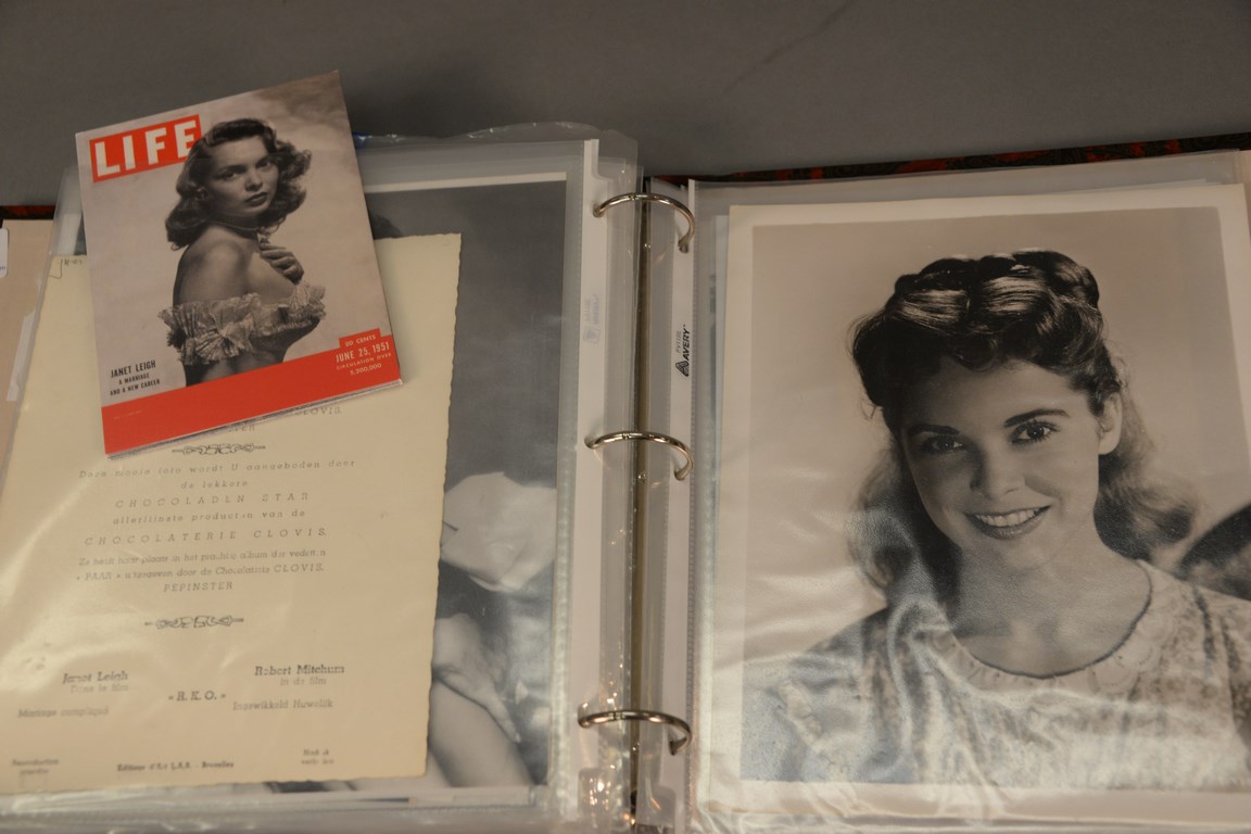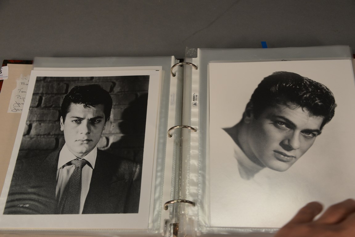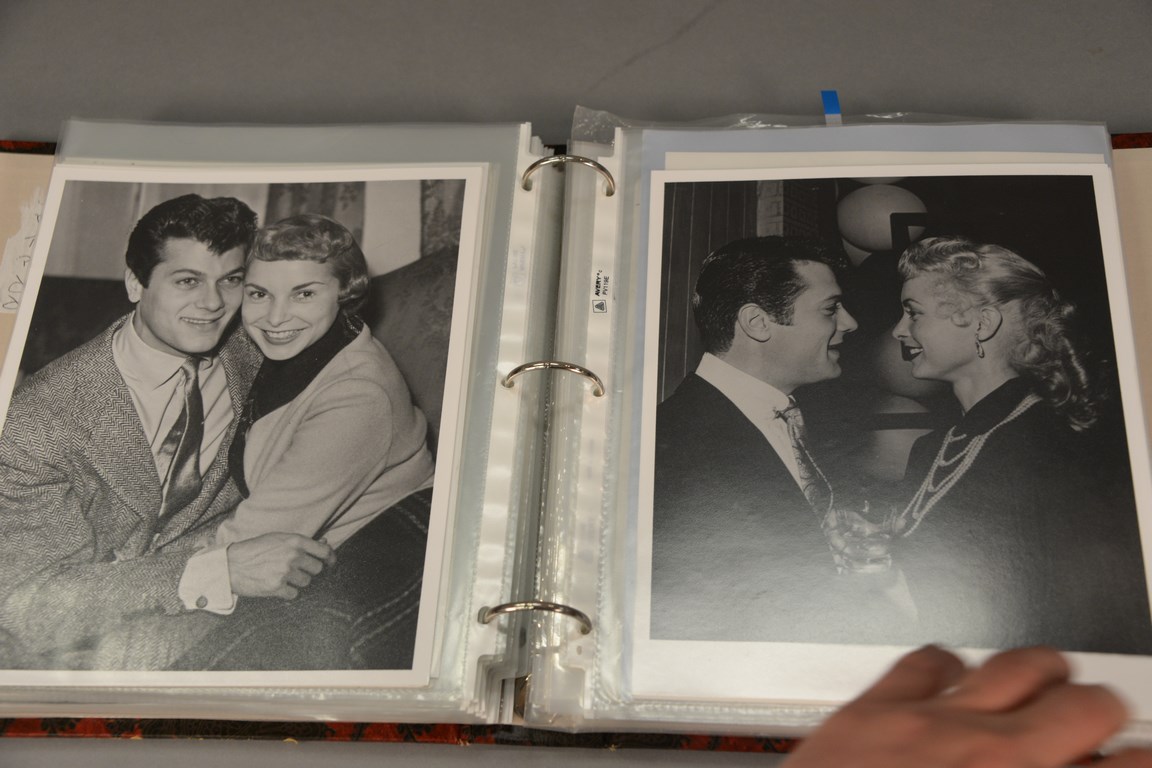 Binder full of signed and unsigned photographs of Tony Curtis and Janet Leigh, approximately 125 total, approximately 65 of them are signed.