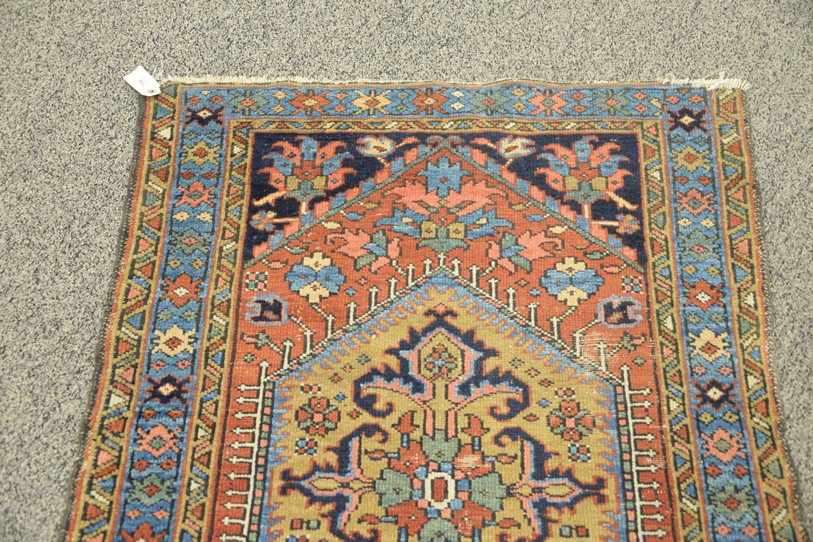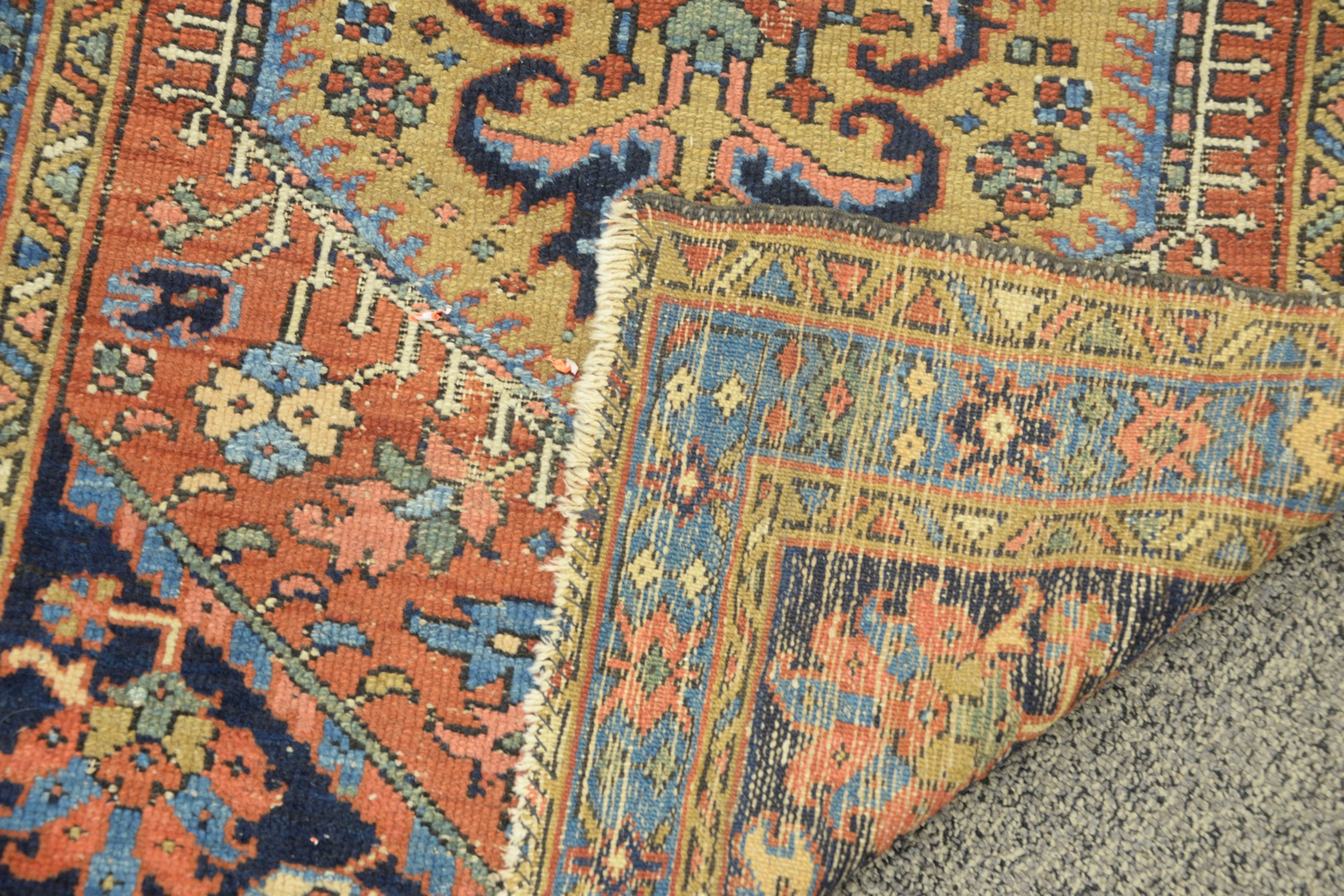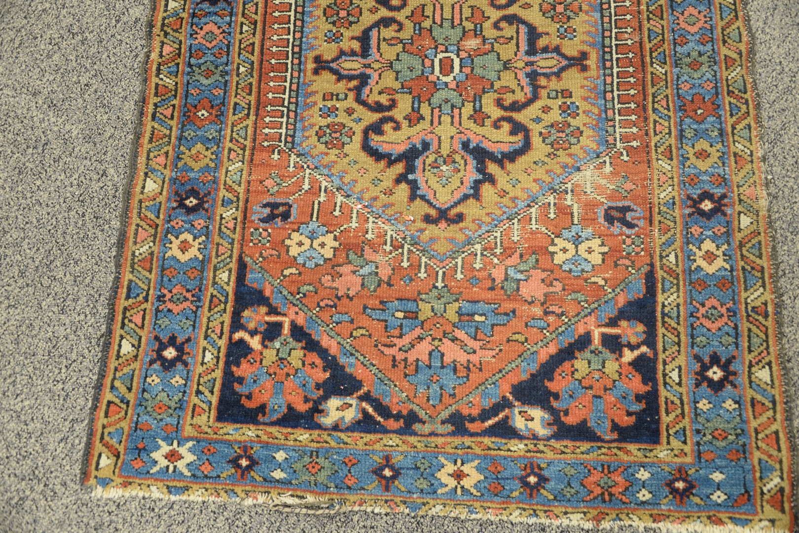 Heriz Oriental Throw Rug, 3′ x 4′ 2, wear.