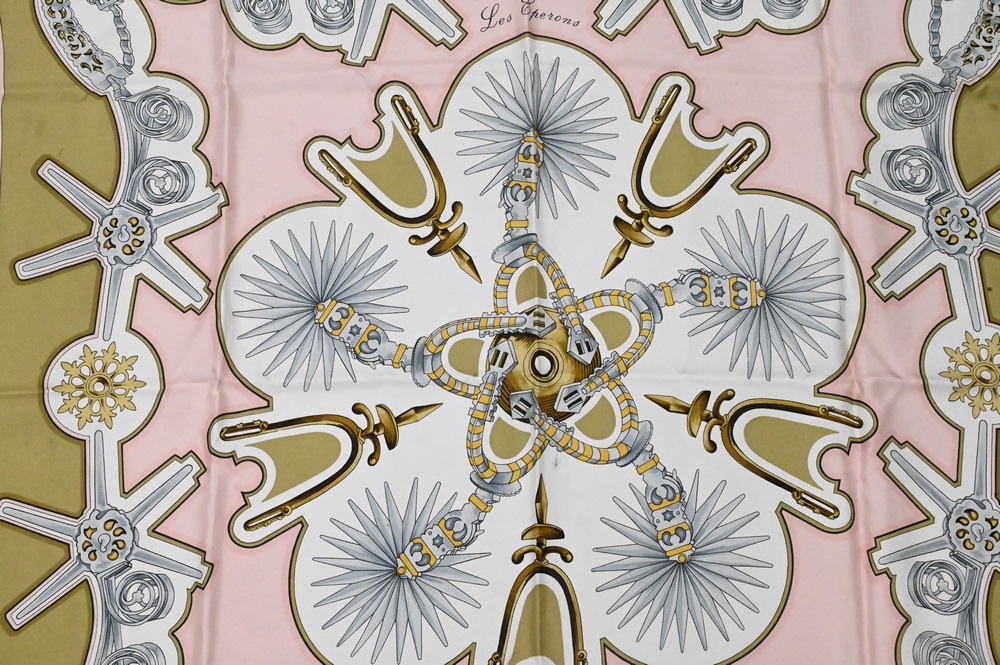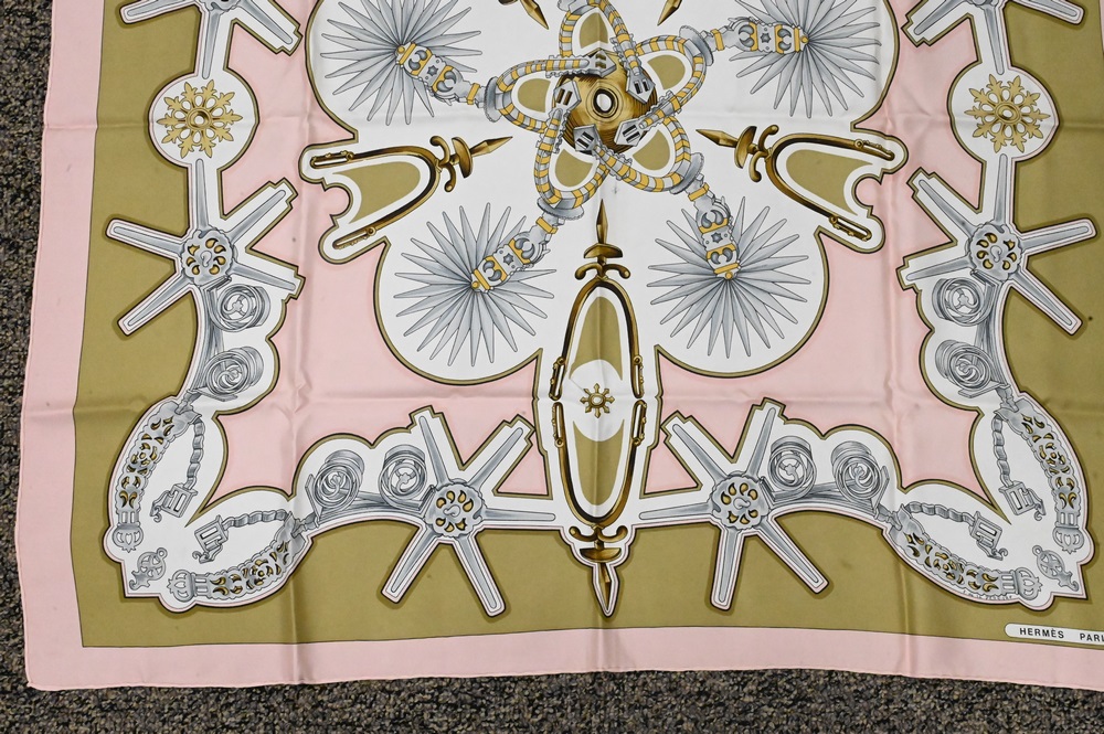 Lot 195: Hermes Paris “Les Eperons” Silk Scarf, 34″ x 34″.