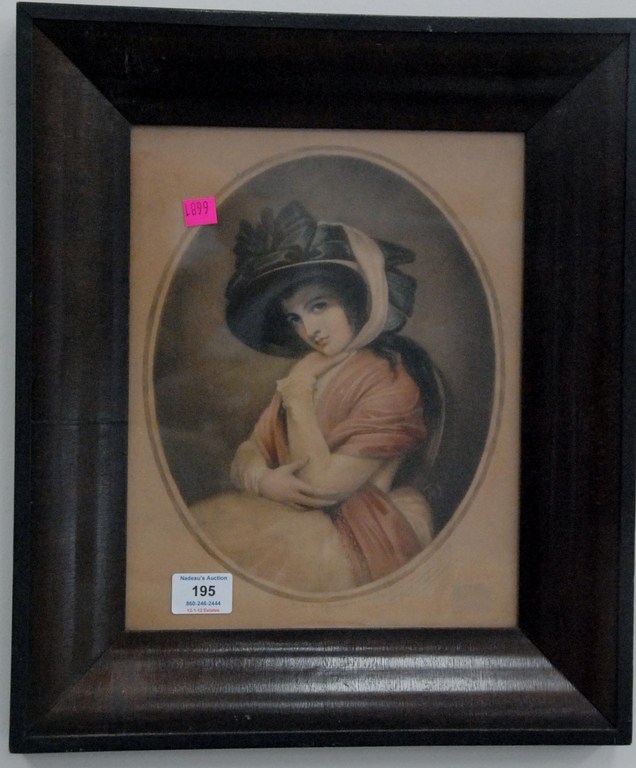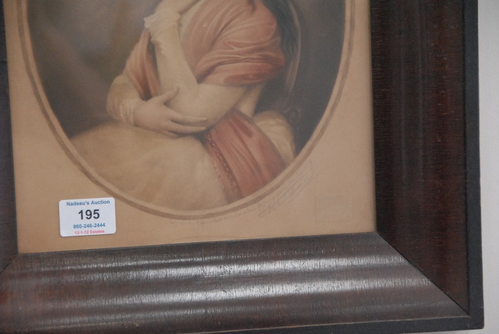 Lot 195: Mezzotint of woman pencil signed S. Arlent Edwards, sight size 11 x 9.