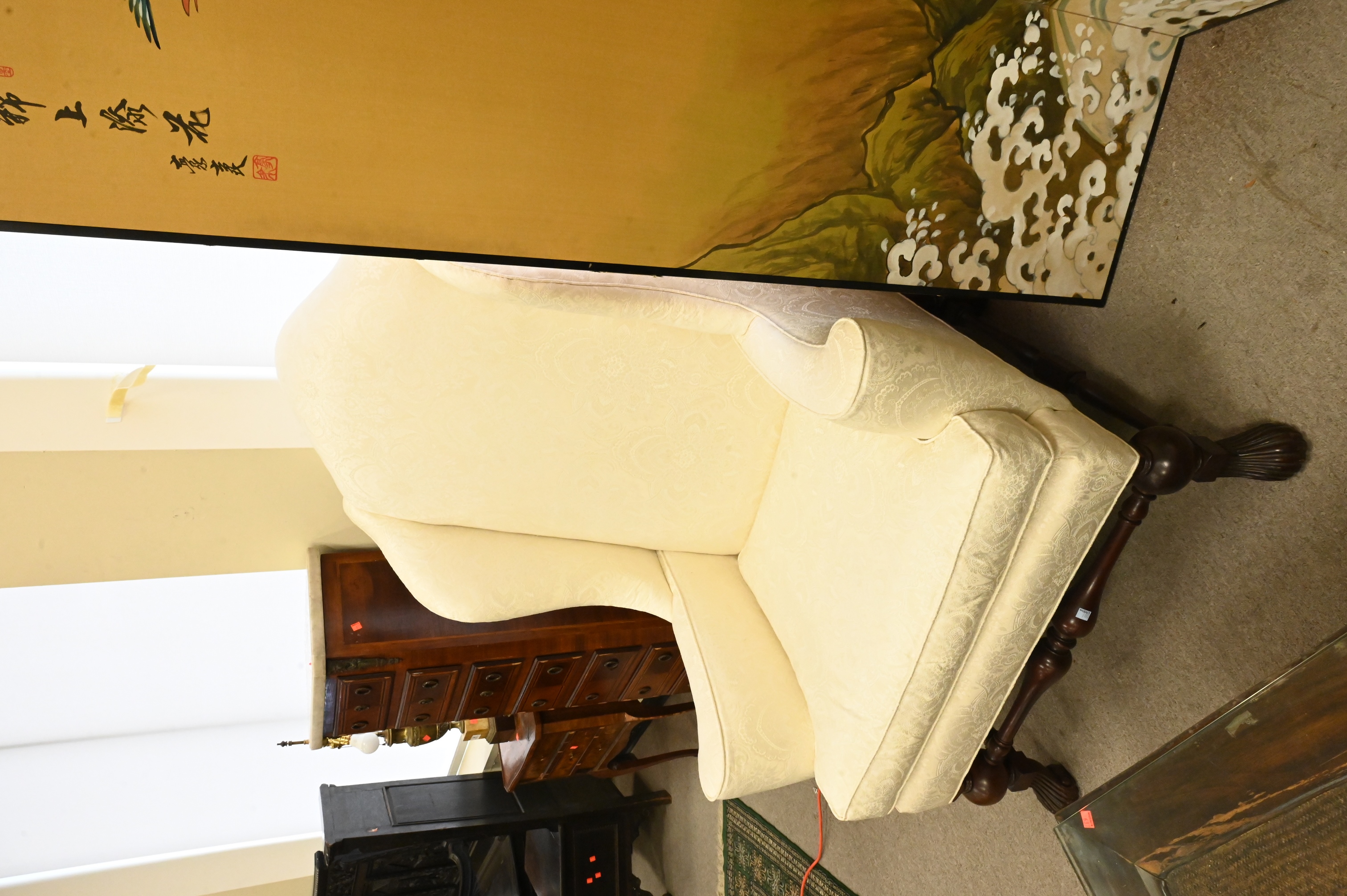 Lot 195: Pair of Continental Style Upholstered Wing Chairs