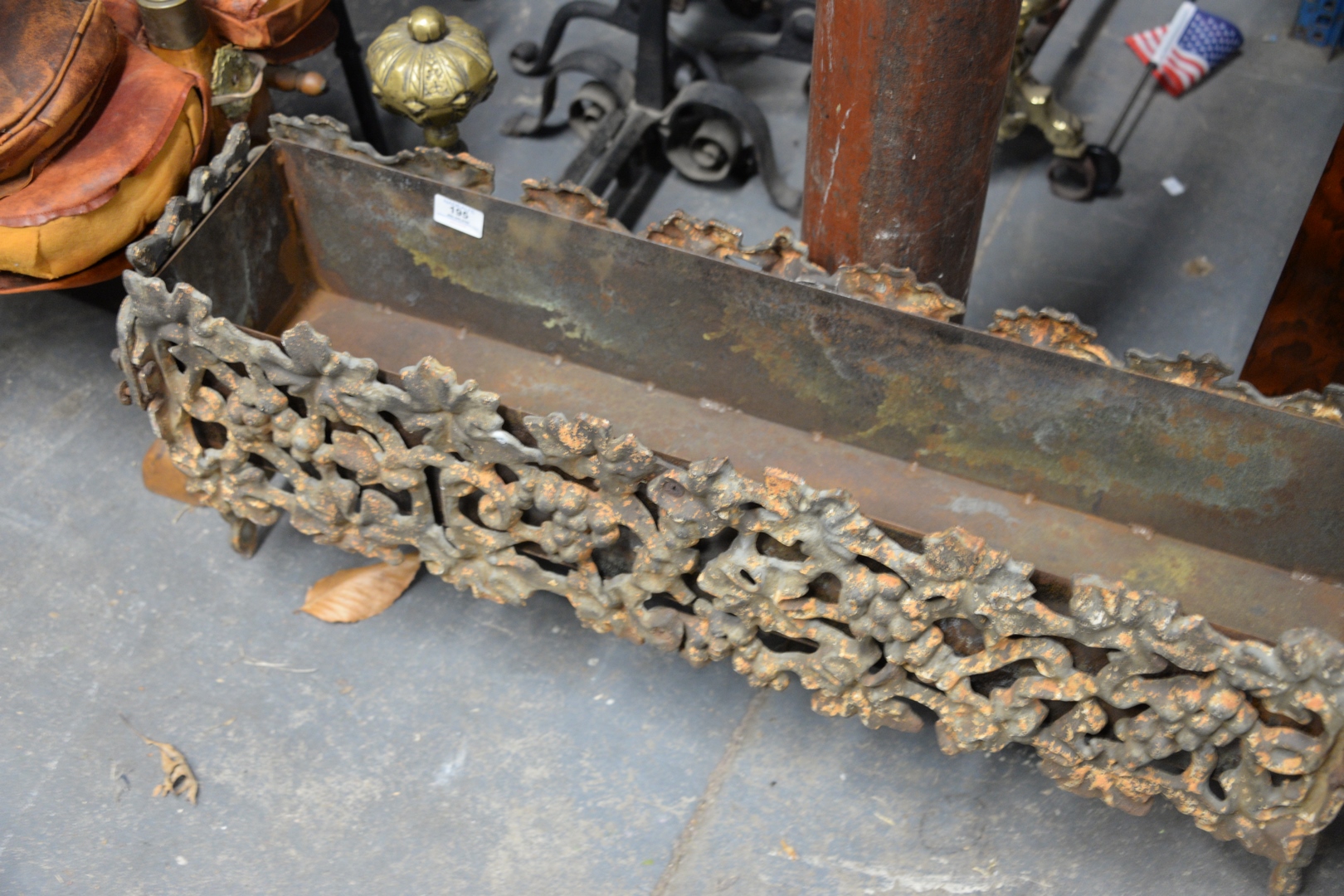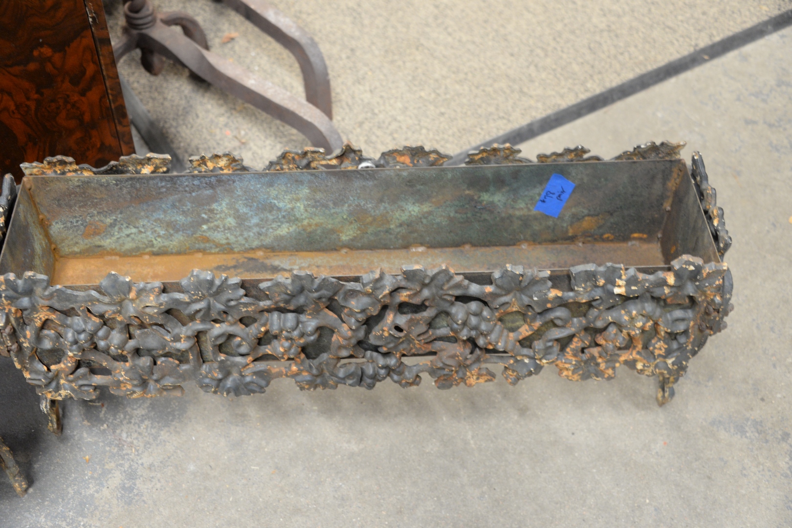 Lot 195: Pair of Iron Rectangular Footed Planters, having metal liners, height 14 1/2 inches, length 34 inches.