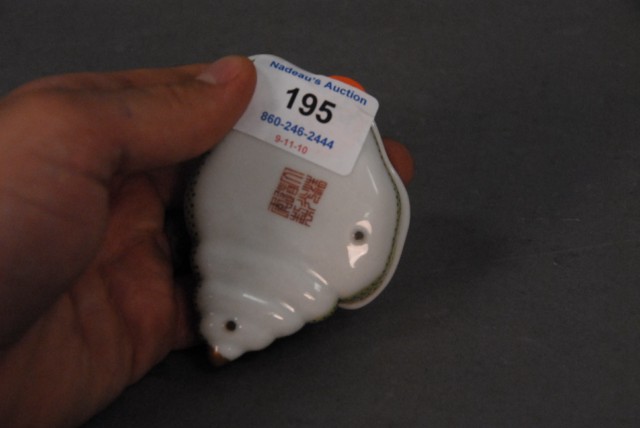 Lot 195: Porcelain shell ink pot with seal mark on bottom