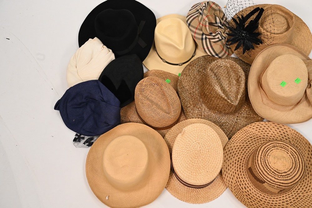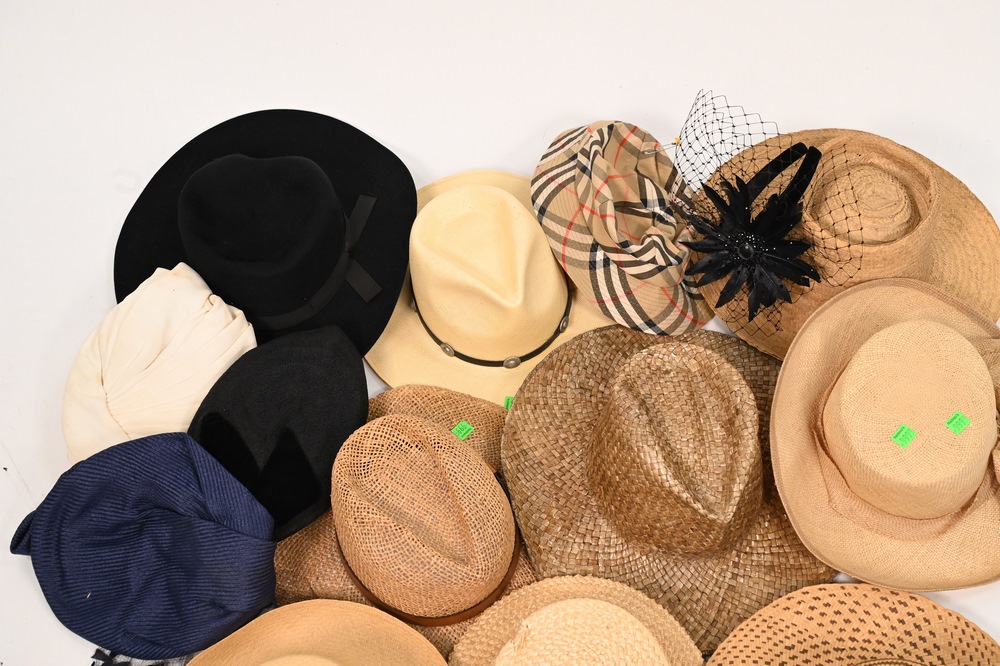 Lot 196: 13 Piece Lot of Vintage and Contemporary Hats, to include womens vintage, mens Cavanaugh Boater, classic Burberry (size 5), straw co…