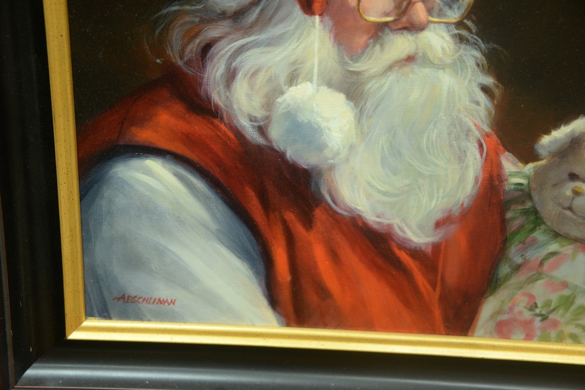Lot 196: Diane Aeschliman 21st Century oil on canvas Santa & Holly Bearly signed lower left: Aeschliman Lyme Art Association original r…