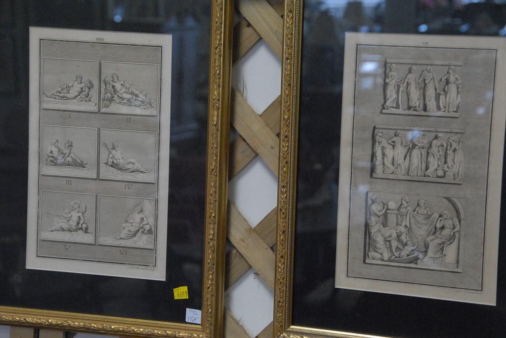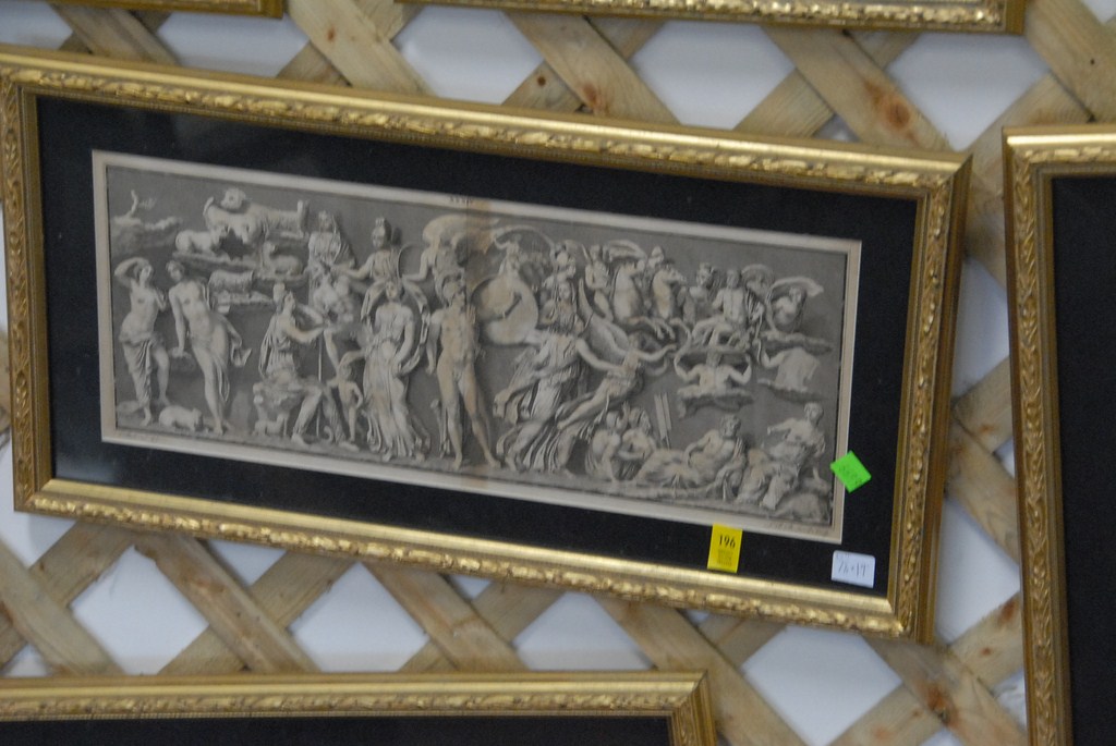 Lot 196: Group of four etchings two mythological scenes 7 1/2 x 19 & 7 x 15 and two Greek Gods 13 x 8 each.