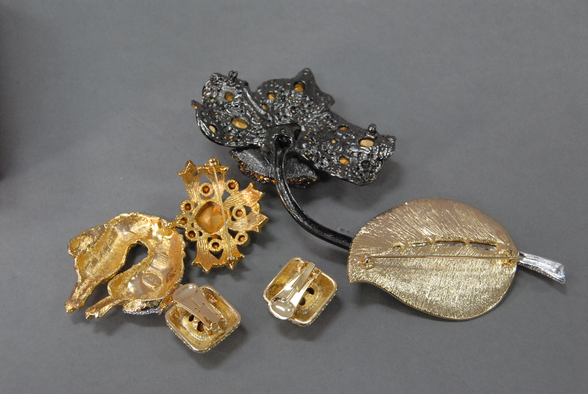 Lot of Kenneth Lane costume jewelry including pair of earrings and three pins.