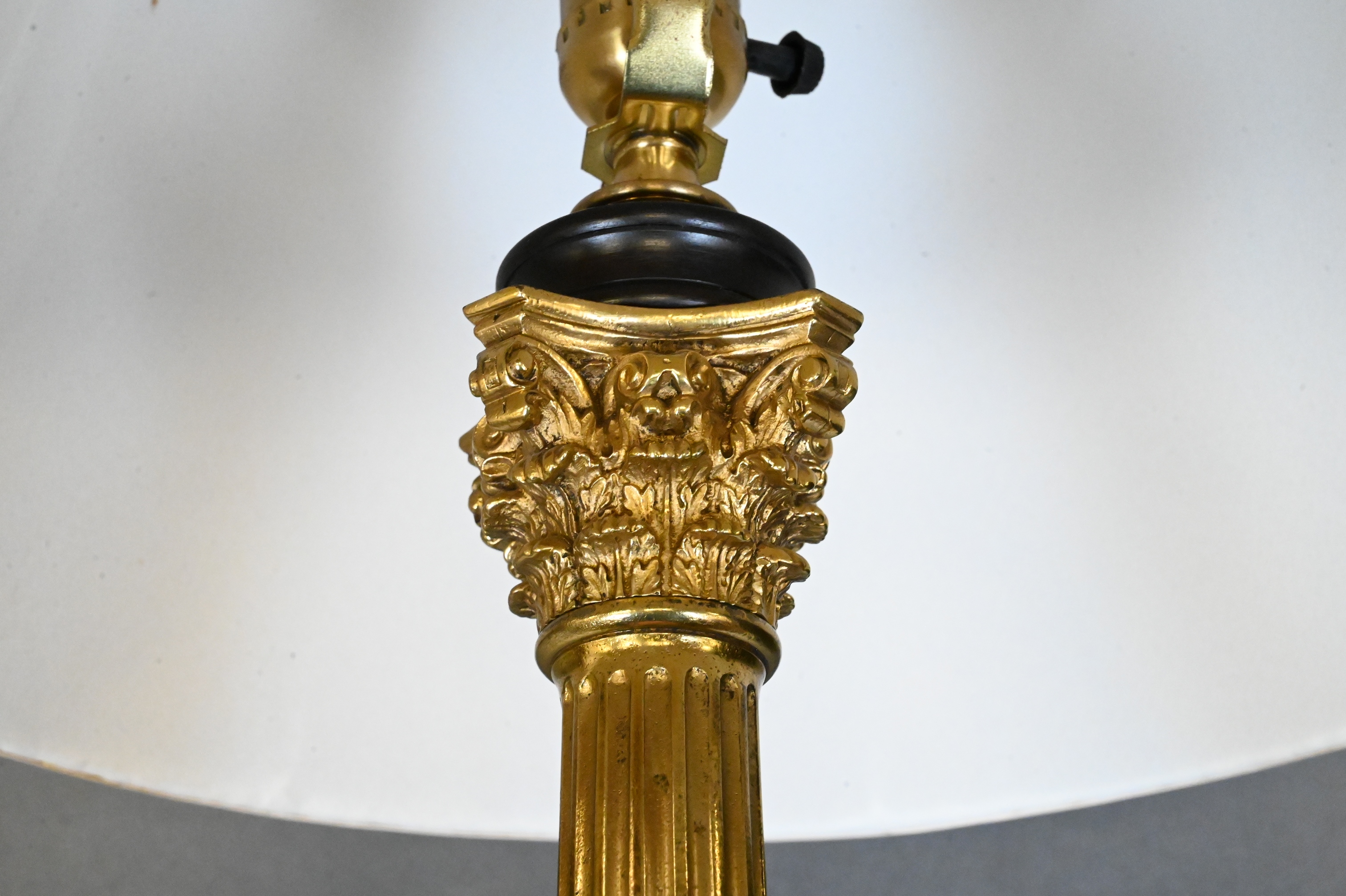 Lot 196: Pair of English Corinthian Column Lamps (English, Late 19th Century)