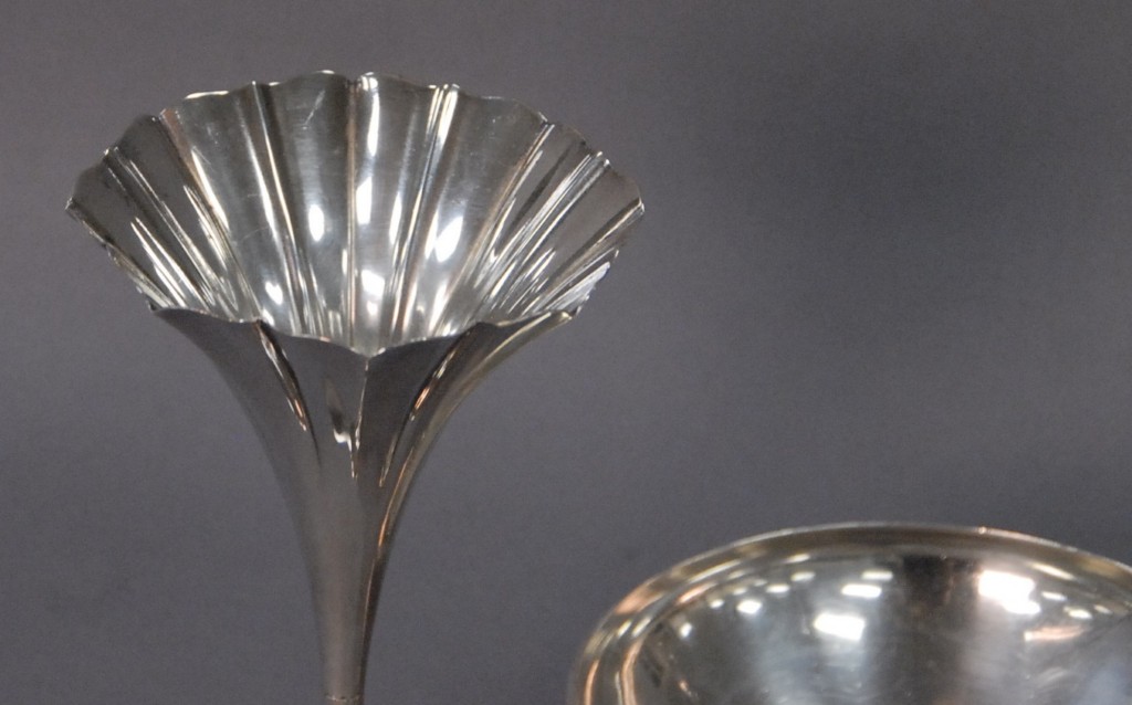 Tiffany two piece sterling silver lot vase with fluted top and footed bowl. 12.6 troy oz.