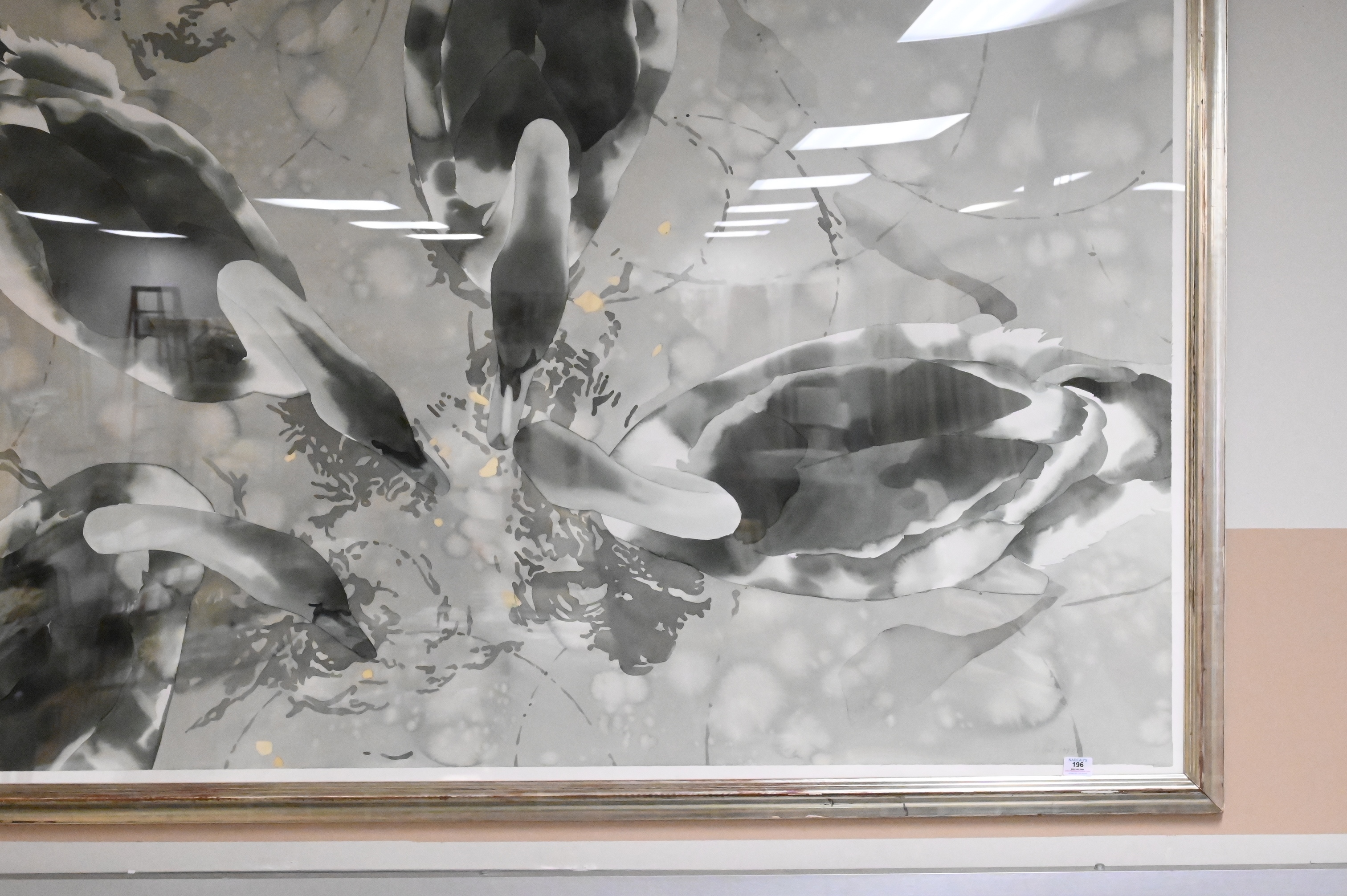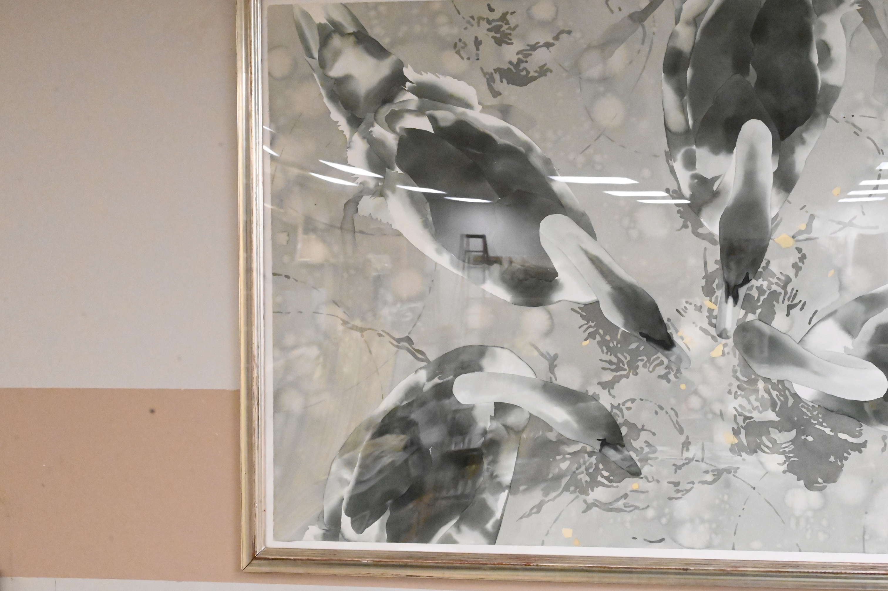 William G. Garbe (American, 1948 – 1989), watercolor, Swans, 1983, signed and dated lower right, frame size 50″ x 78″ x 2″; paper size 44″ x 72″.