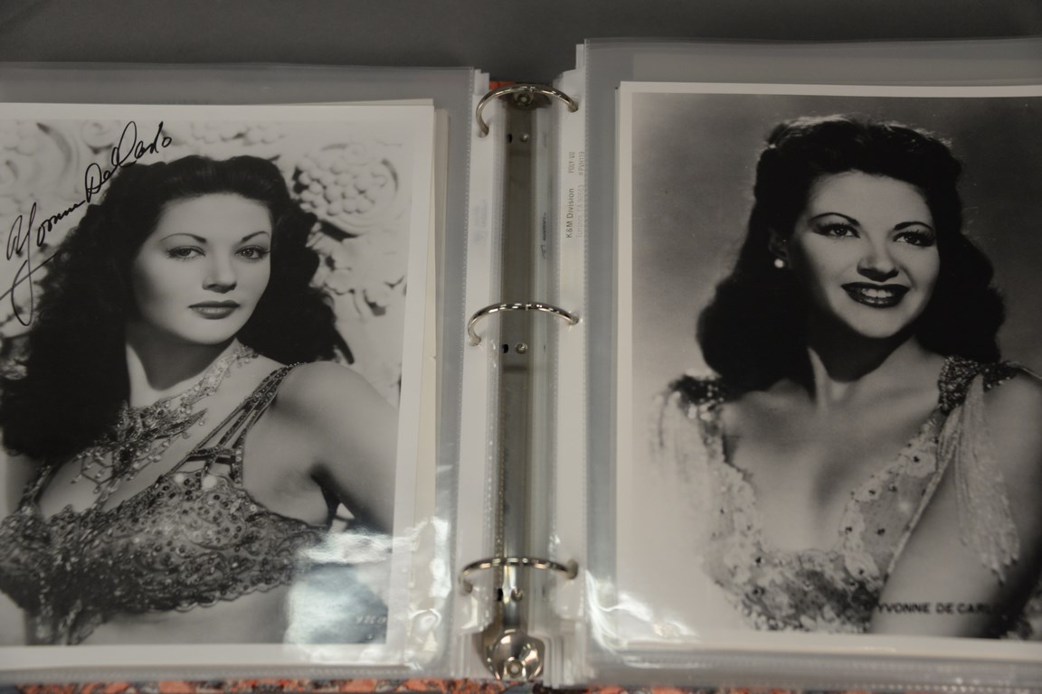 Binder of original photographs of Yvonne De Carlo, approximately 90 unsigned and 17 signed.