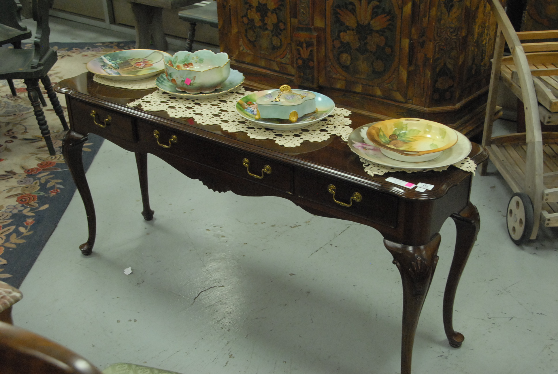 Ethan Allen dark cherry sofa/hall table, lg. 57in.