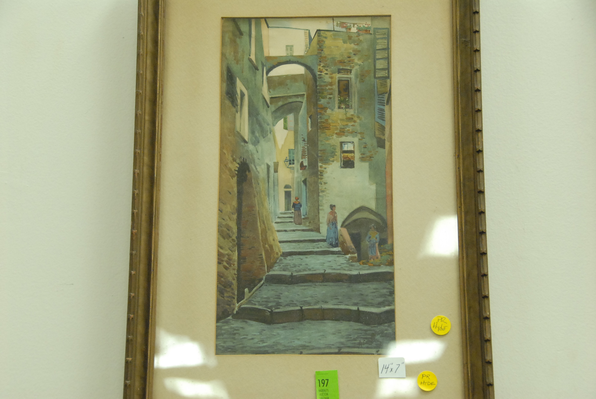 Five piece lot including two prints, two watercolors, and an oil painting.