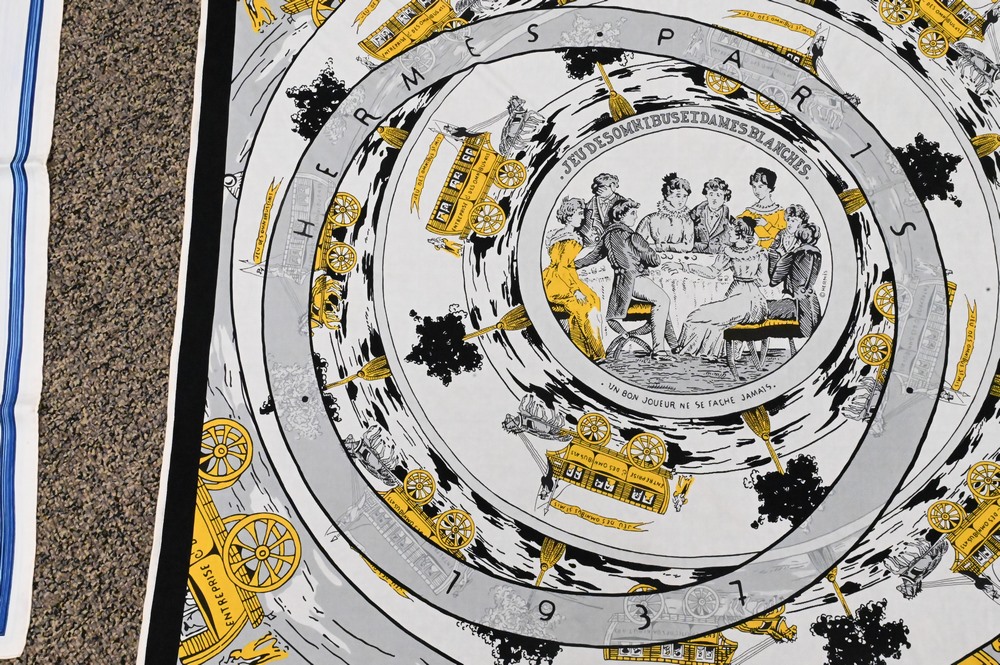 Hermes Paris “Jeu Des Omnibus Et Dames Blanches” Silk Scarf.