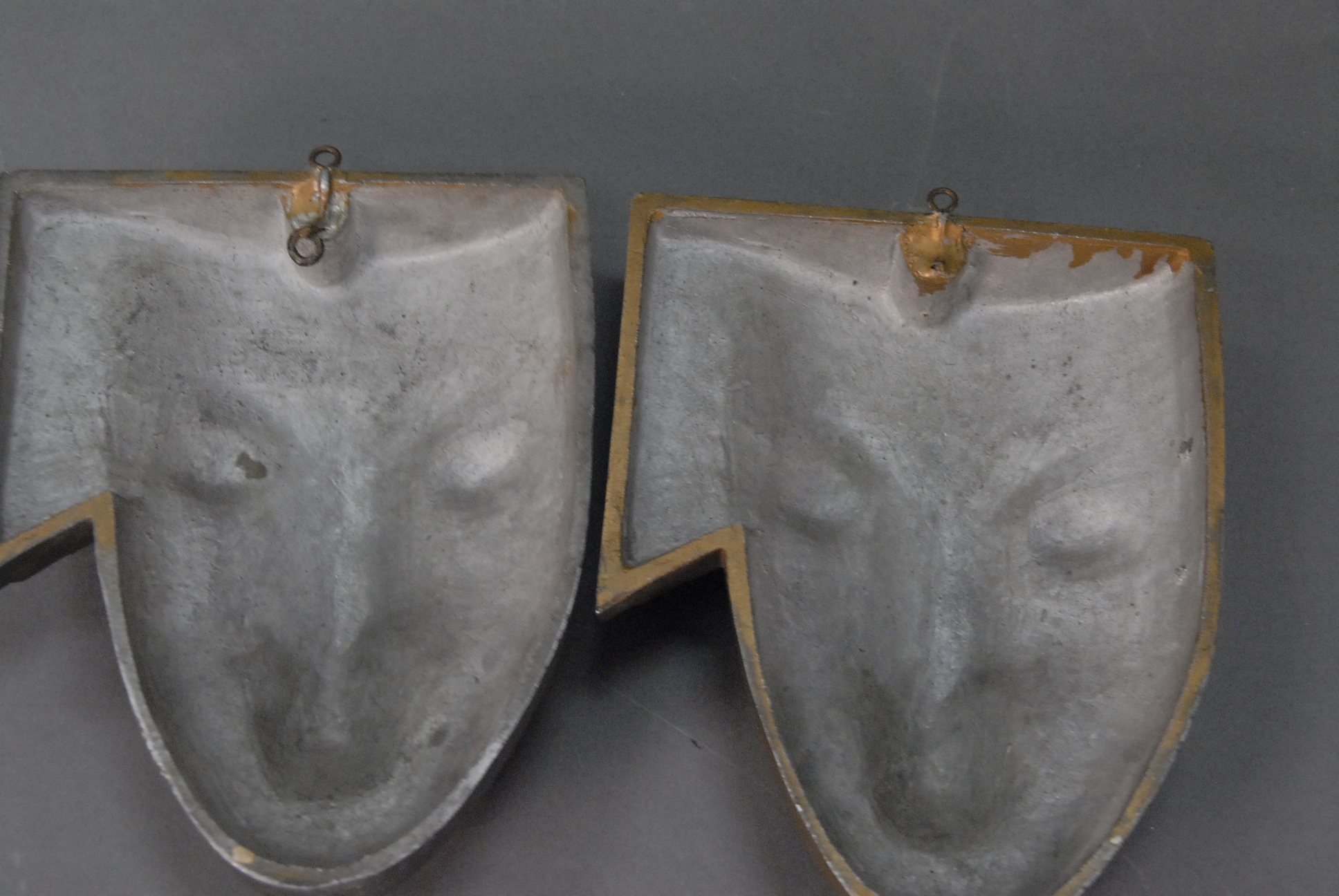 Norman Bel Geddes style pair of cast aluminum Art Deco wall masks, circa 1933.