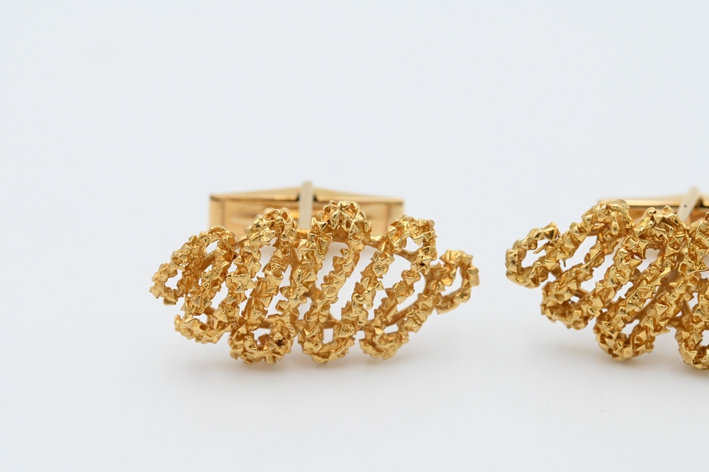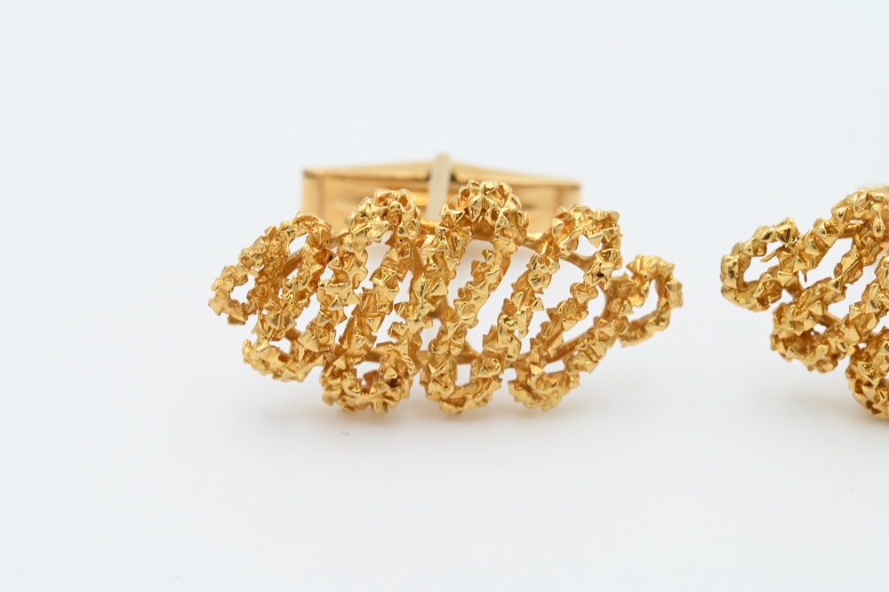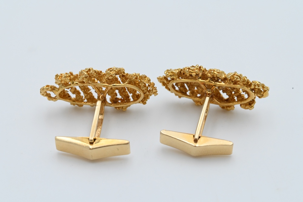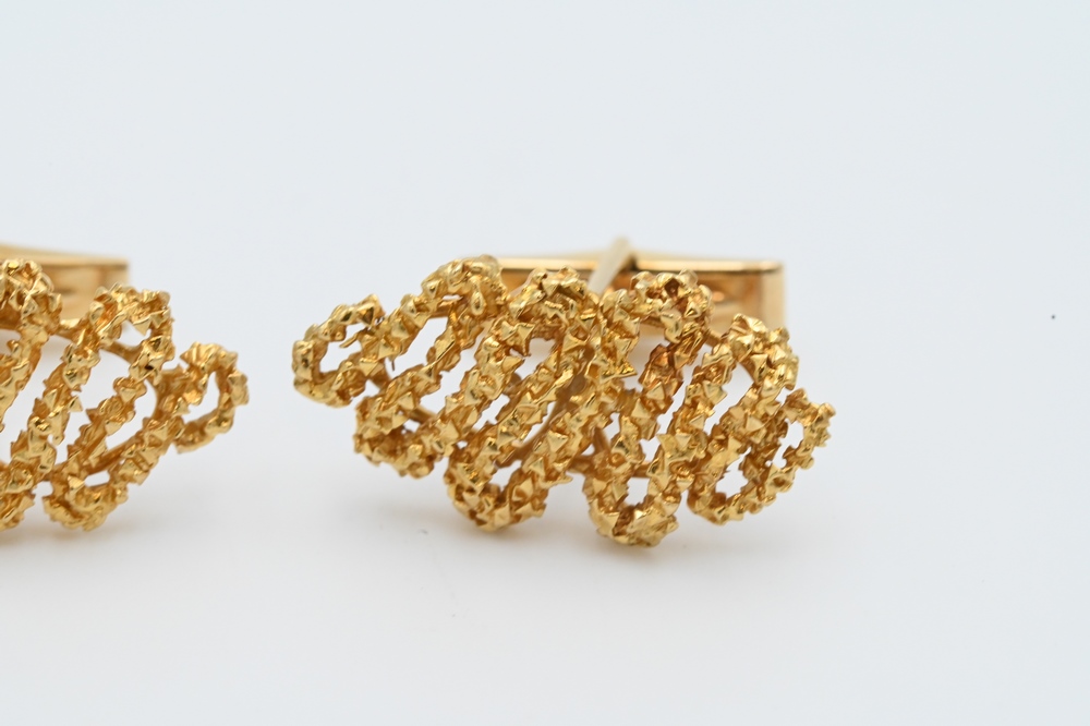 Lot 197: Pair of 14 Karat Gold Cufflinks, length 1 1/4 inches, 17 grams.