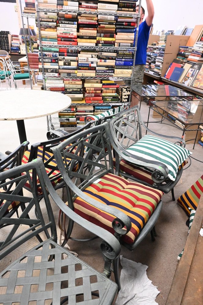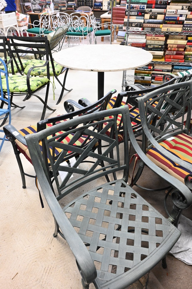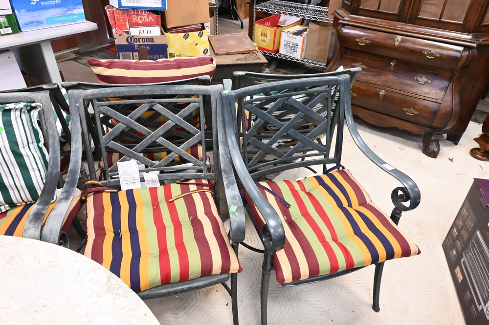 Set of Six Outdoor Armchairs, along with cushions.