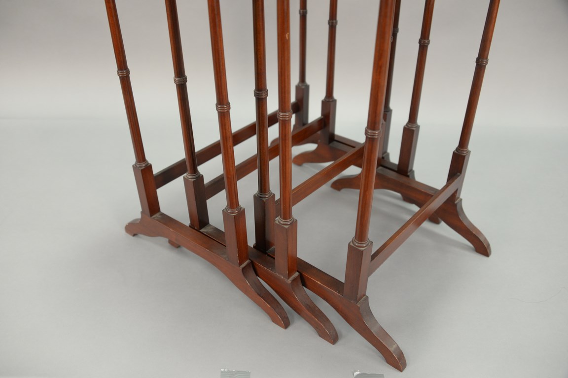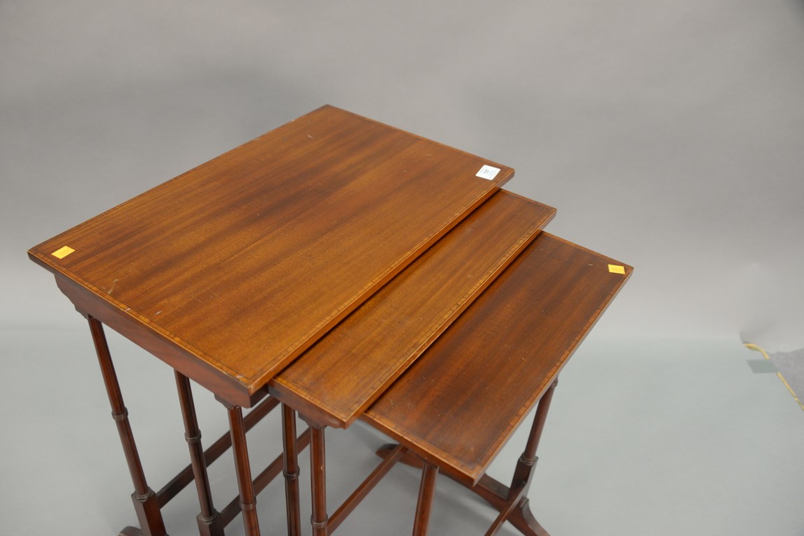 Set of three Margolis inlaid mahogany stacking tables, ht. 26 in. wd. 22 in.