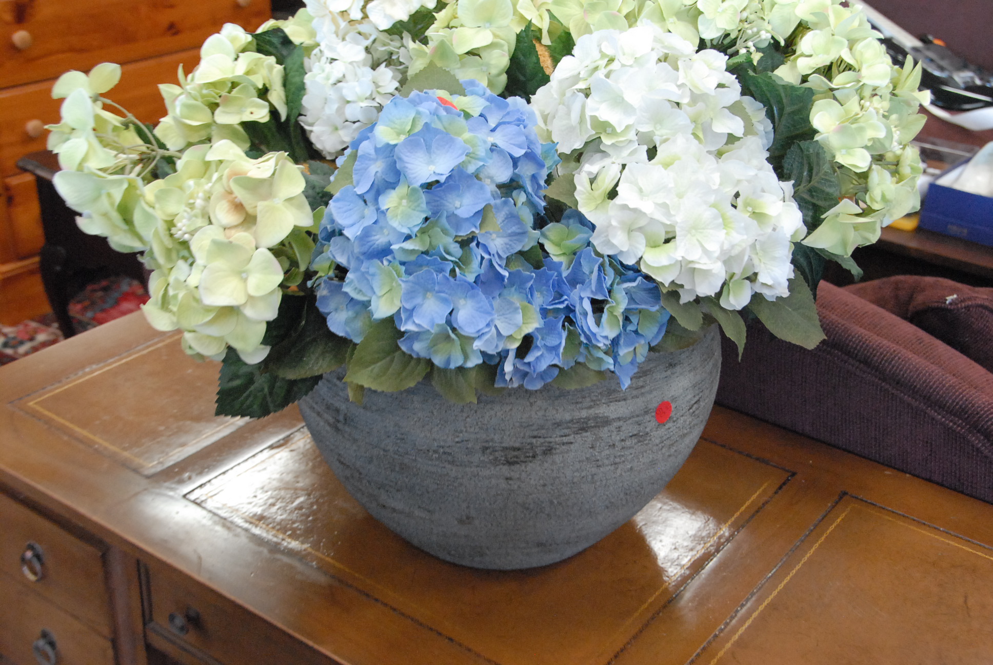 Six piece lot to include three vases, planter, and a pair of lamps.