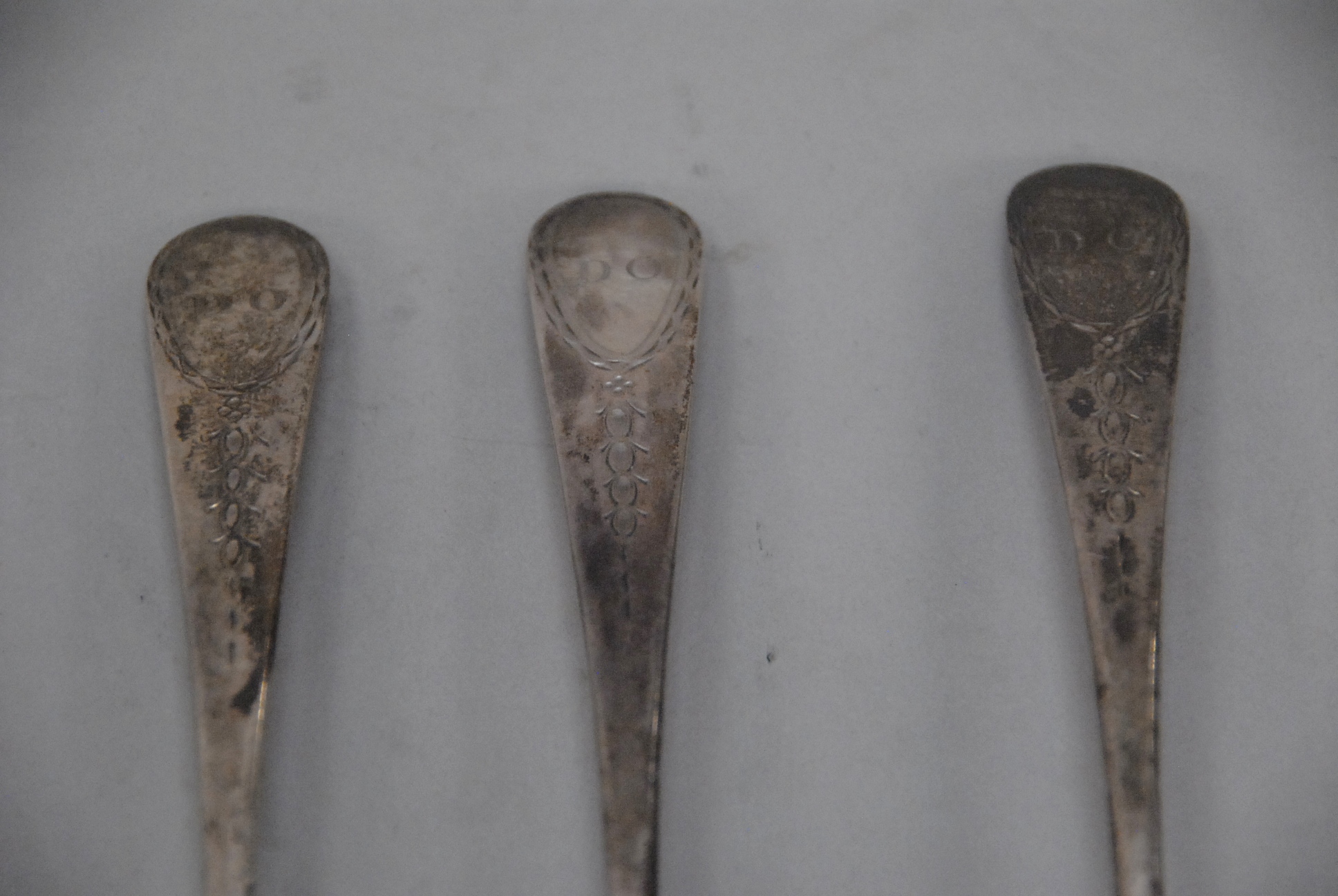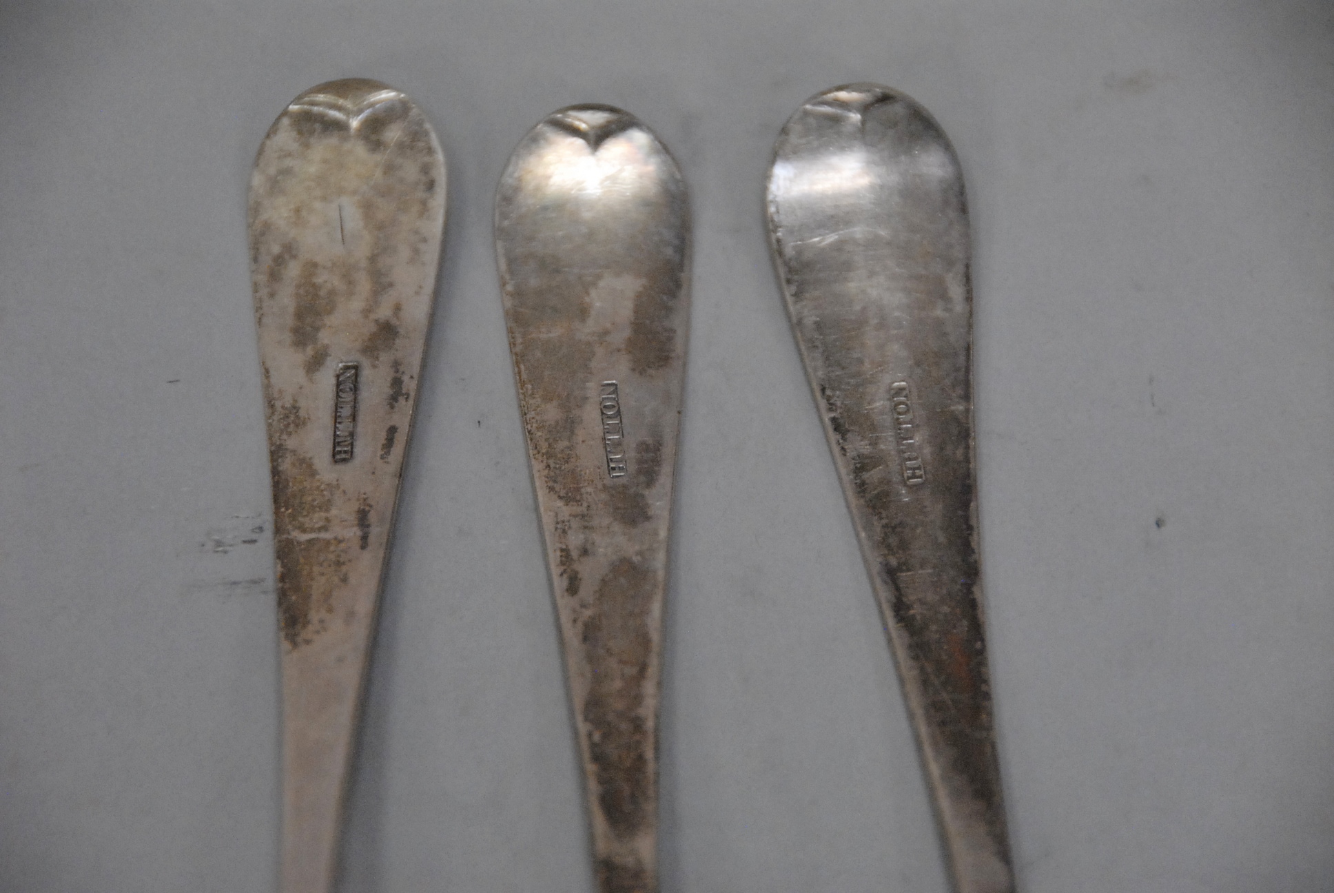 Three silver tablespoons, Isaac Hutton, Albany, N.Y. 1767-1855.