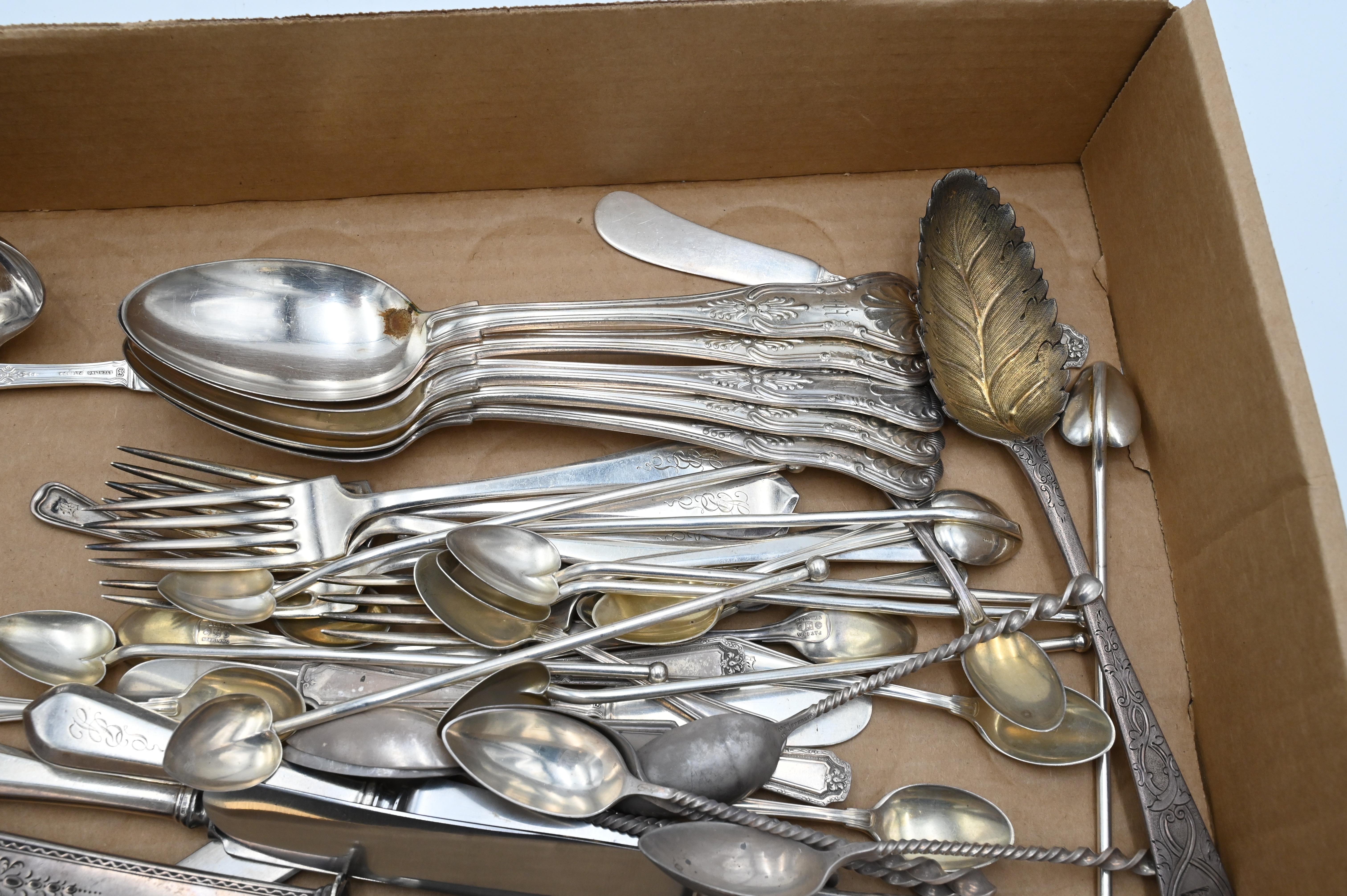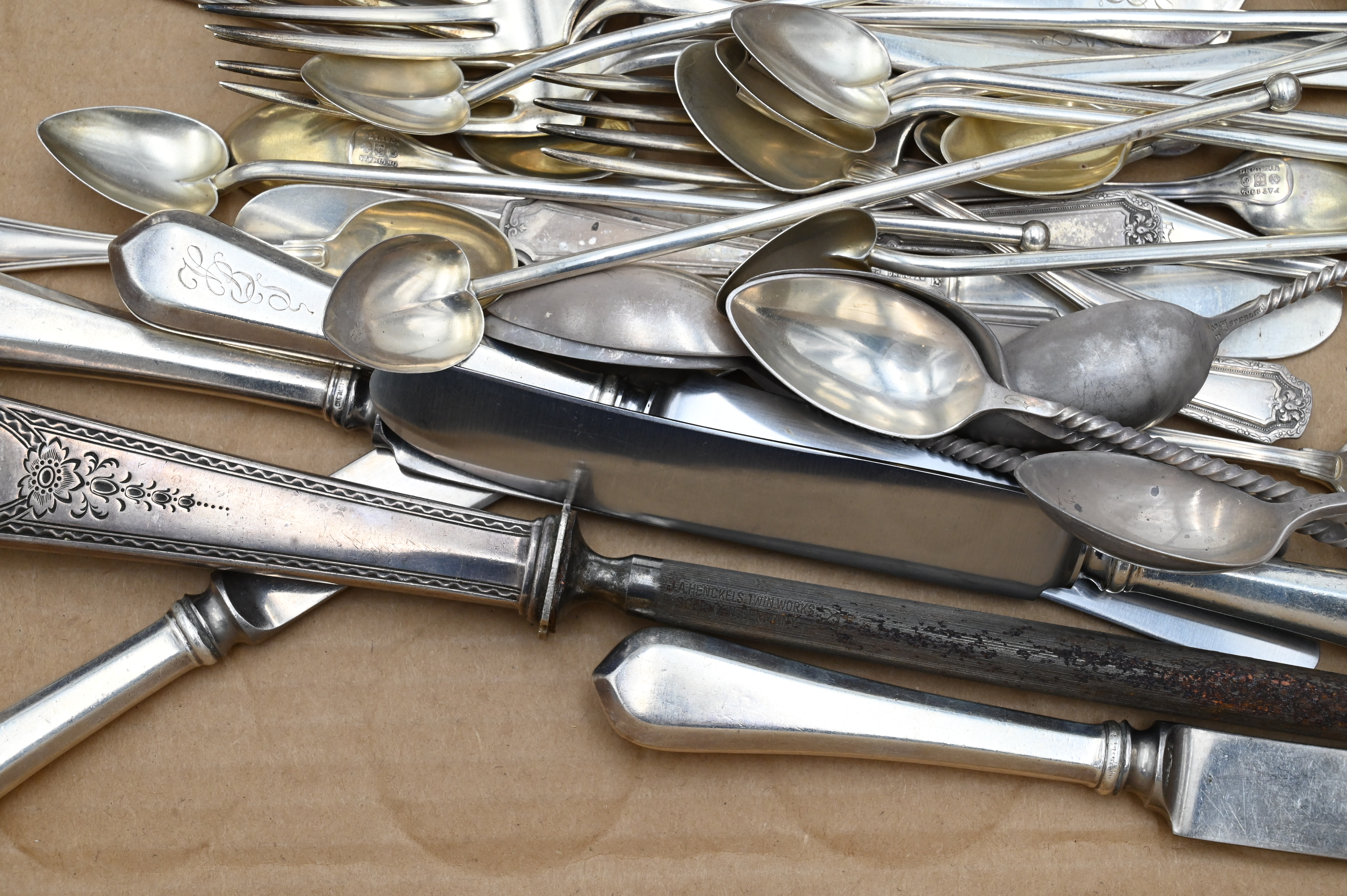 Tray Lot of Miscellaneous Silver Flatware, 38.6 t.oz. plus handles.