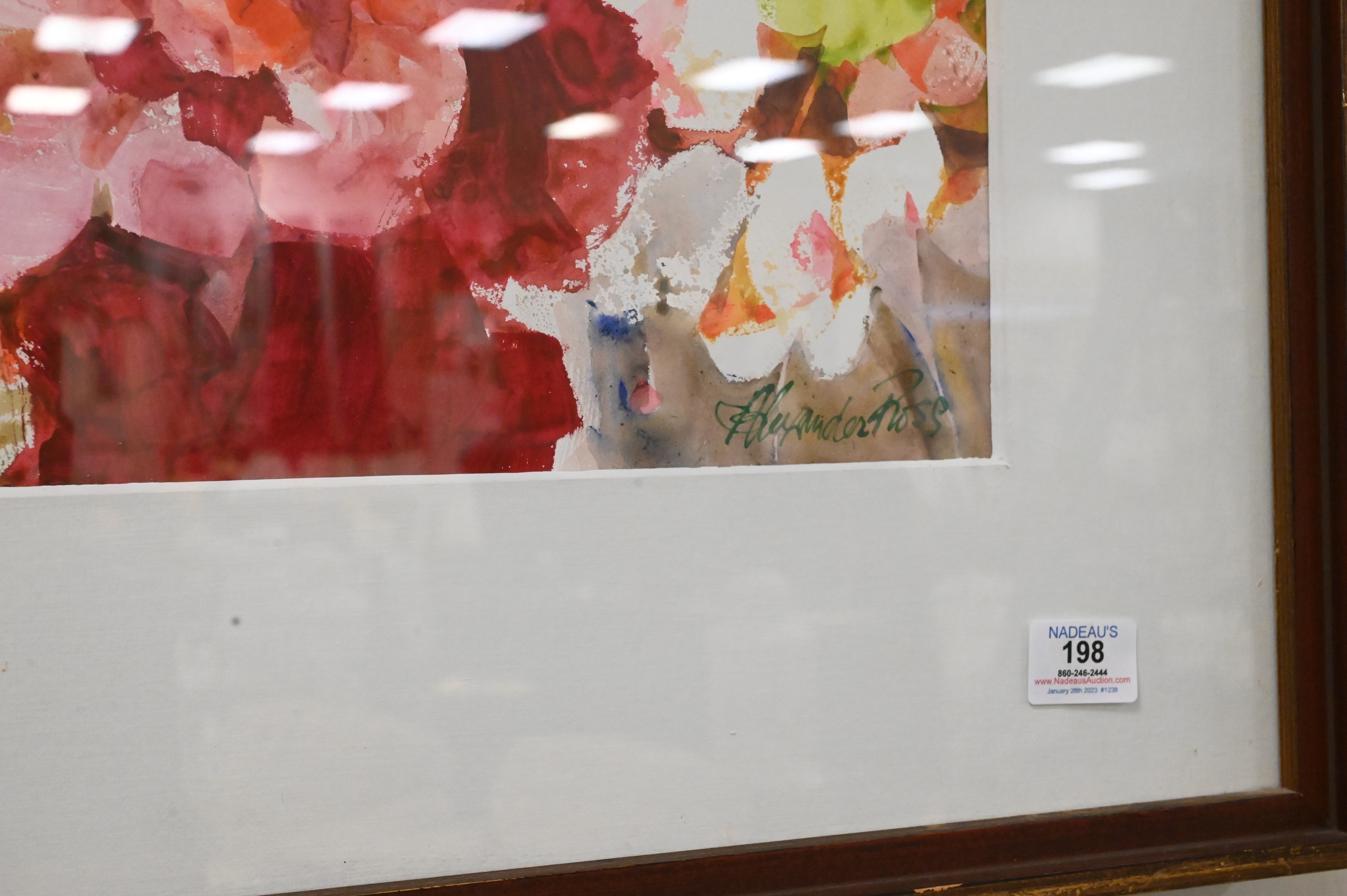 Alexander Ross, watercolor, still life of flowers, signed lower right ‘Alexander Rose’, sight size 25″ x 16 1/4 inches.
