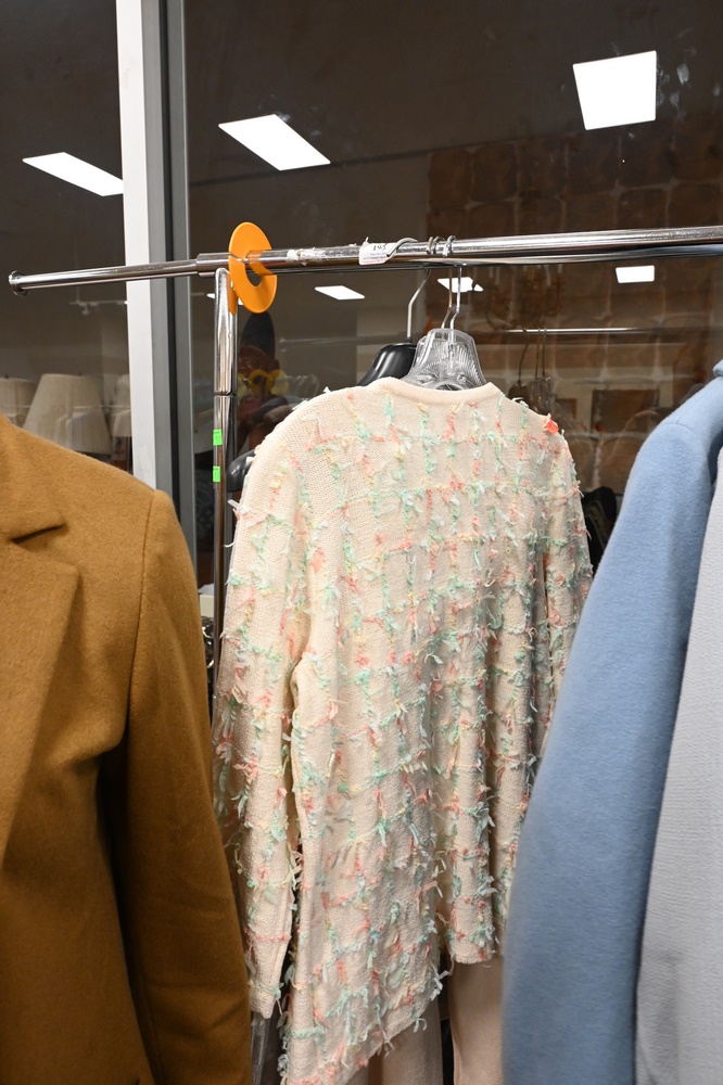 Lot 198: Delle Celle Designer Lot of 23 Pieces, to include linen blazer, tan cashmere blazer, pant suits, sweater sets, etc., size 8/10, cond…