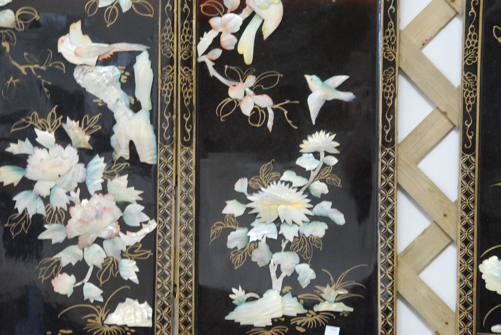 Lot 198: Four Oriental three dimensional wall hangings, 12 x 36.