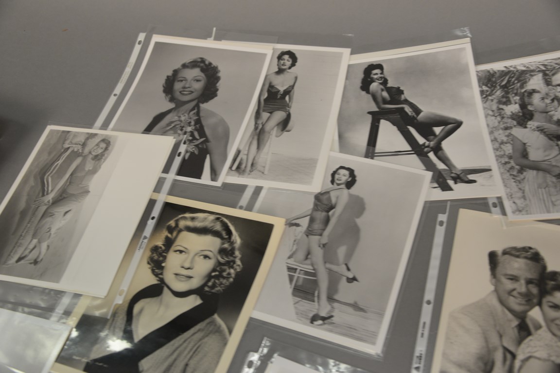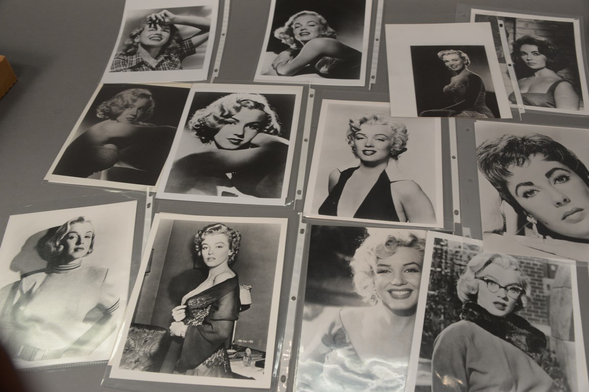 Group of 90 unsigned photographs including 7 Sean Connery, 7 Audrey Hepburn, 6 Ava Gardner, 6 Linda Darnell, 4 Elizabeth Taylor, 10 Rita Hayworth, 10 Yvonne De Carlo, 10 Esther Williams, 10 Tyrone Powers, and 20 Marilyn Monroe.