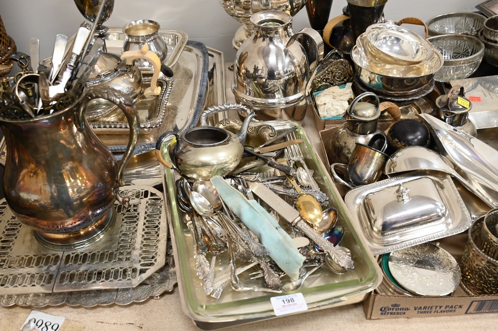 Lot 198: Large Group of Silverplate, to include trays, serving pieces, flatware, etc.