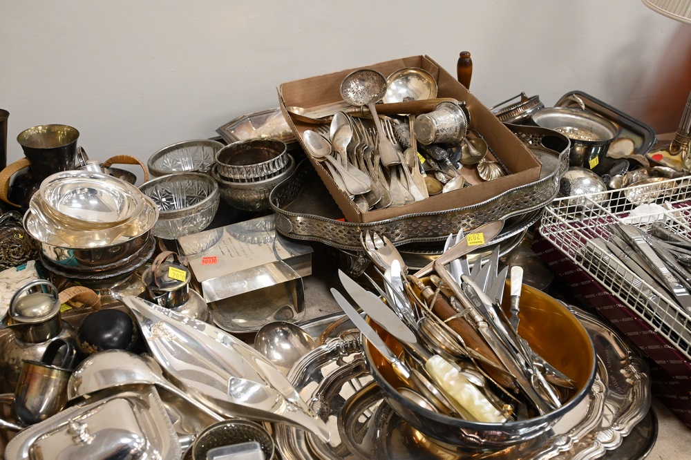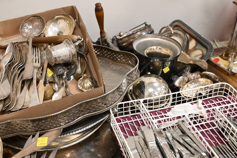 Large Group of Silverplate, to include trays, serving pieces, flatware, etc.