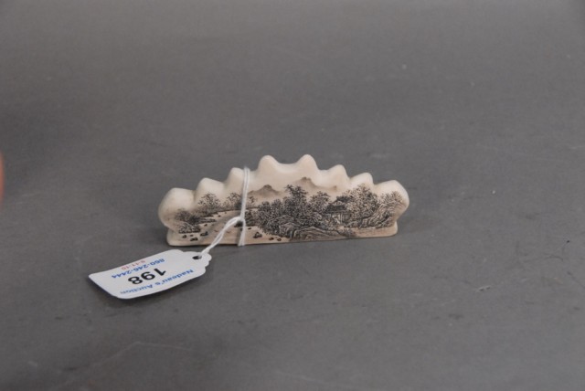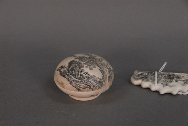 Set of two unglazed ceramic scholar’s objects: ink box and brush holder.