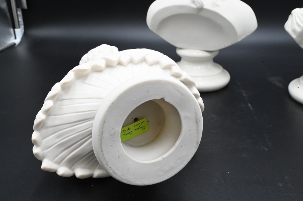 Lot 198: Three Belleek Porcelain Busts, height 10 inches. Provenance: Collections of Norma Reilly, New Jersey.