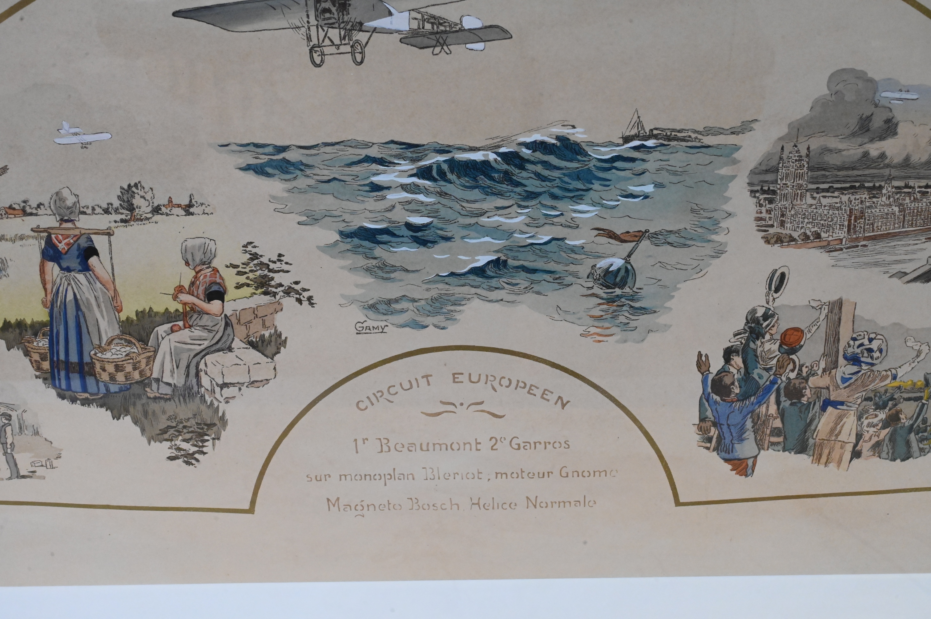 “Circuit Europeen: 1r Beaumont 2e Garros sur monoplan Blériot, Moteur Gnome Magneto Bosch, Helice Normale”