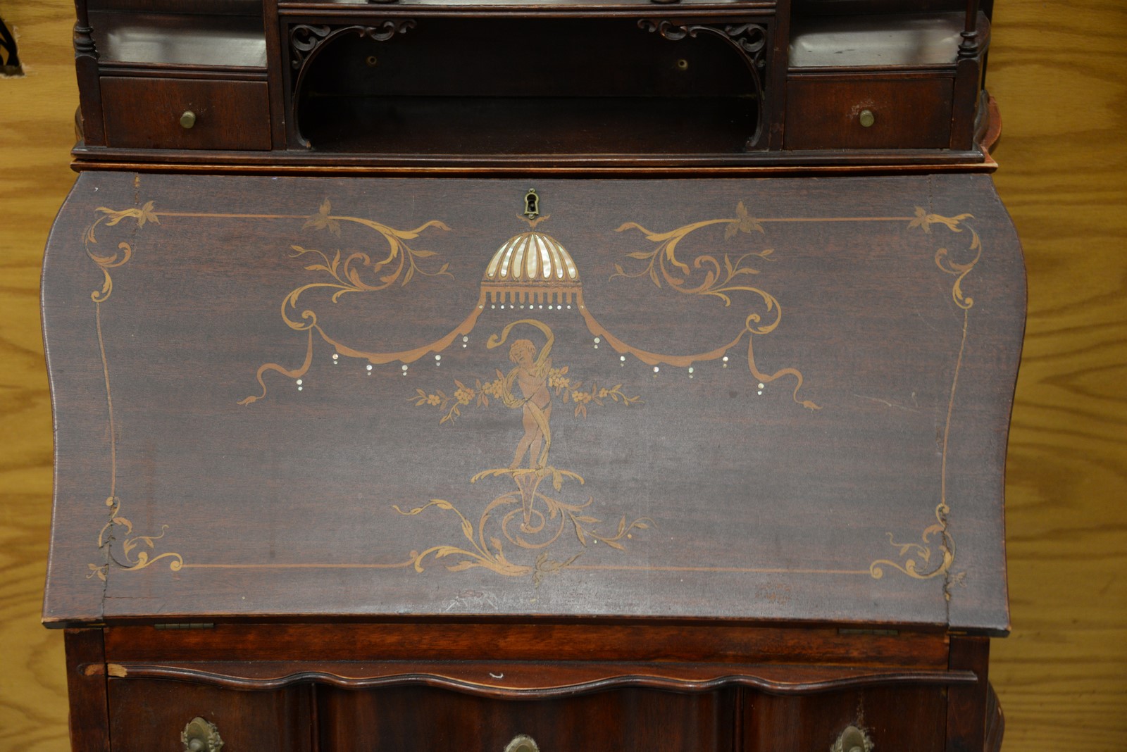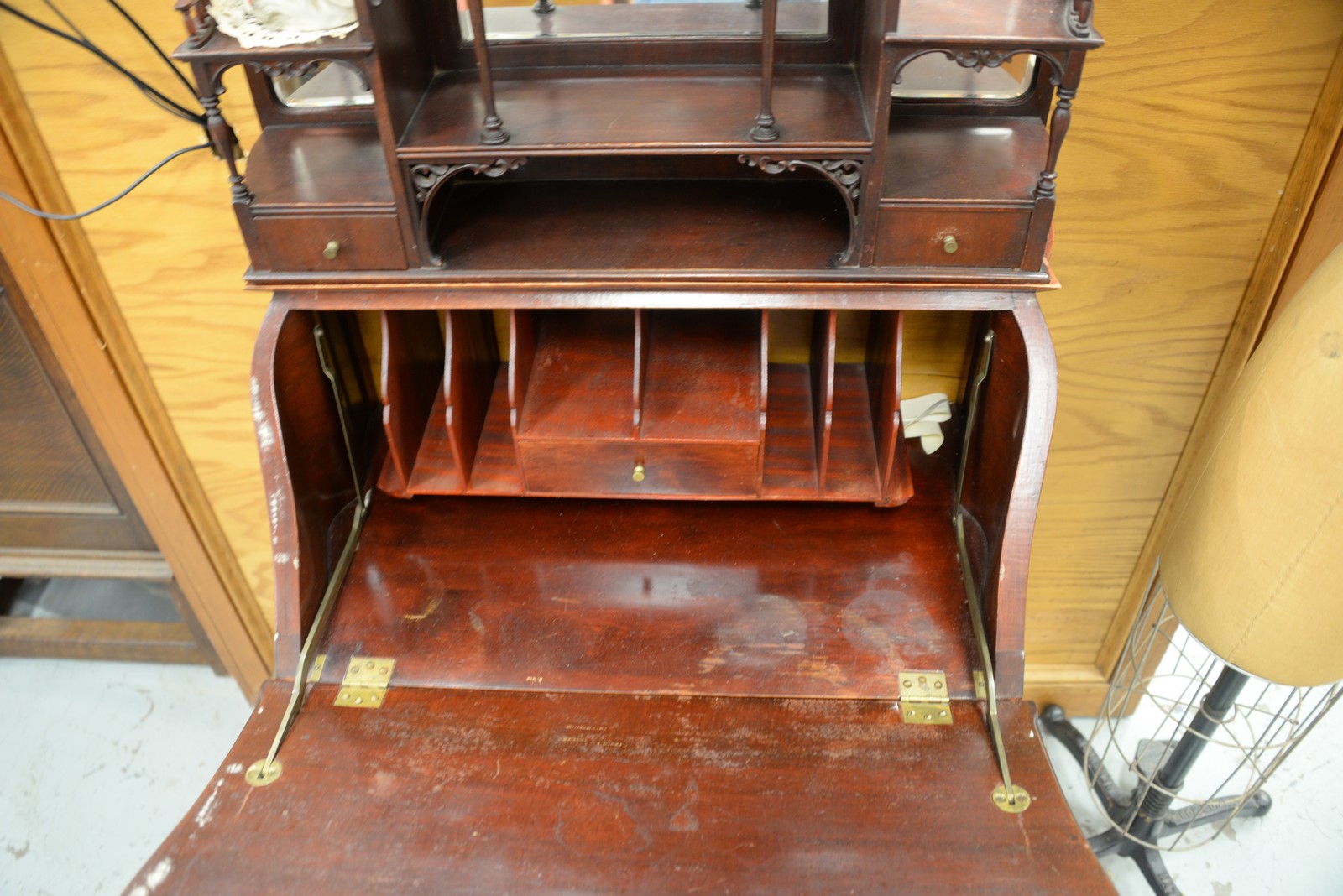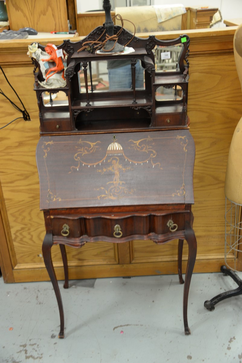 Victorian mahogany ladies desk with inlaid lid. ht. 55 in. wd. 26 in. dp. 15 1/2 in.
