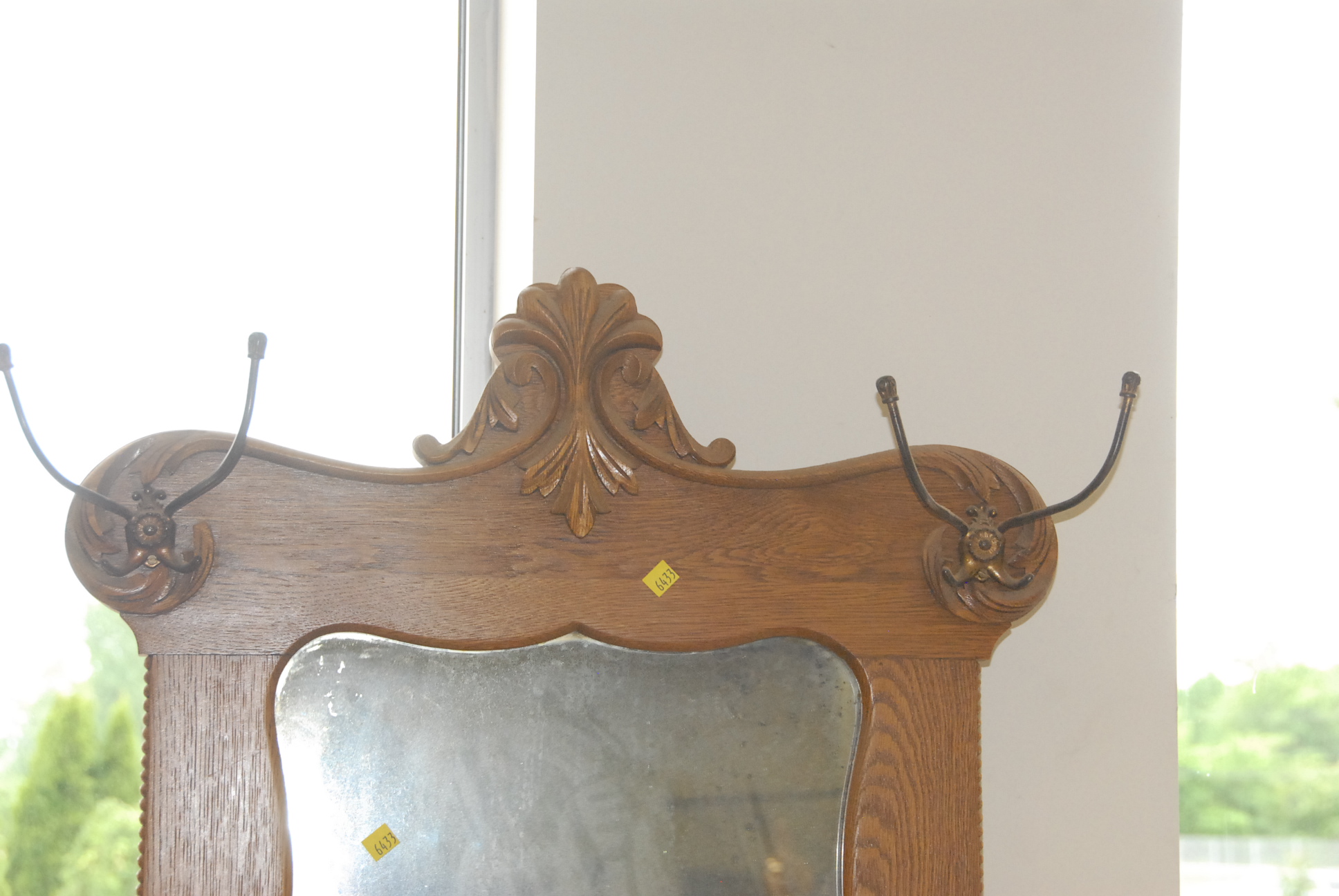 Victorian oak hall seat minor damage to seat with mirror and hat hook.