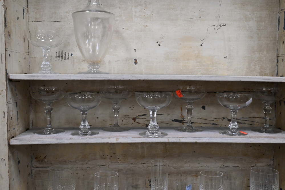 12 Piece Baccarat Group, to include a pair of bottles and 10 stems, height 4 1/8 inches.