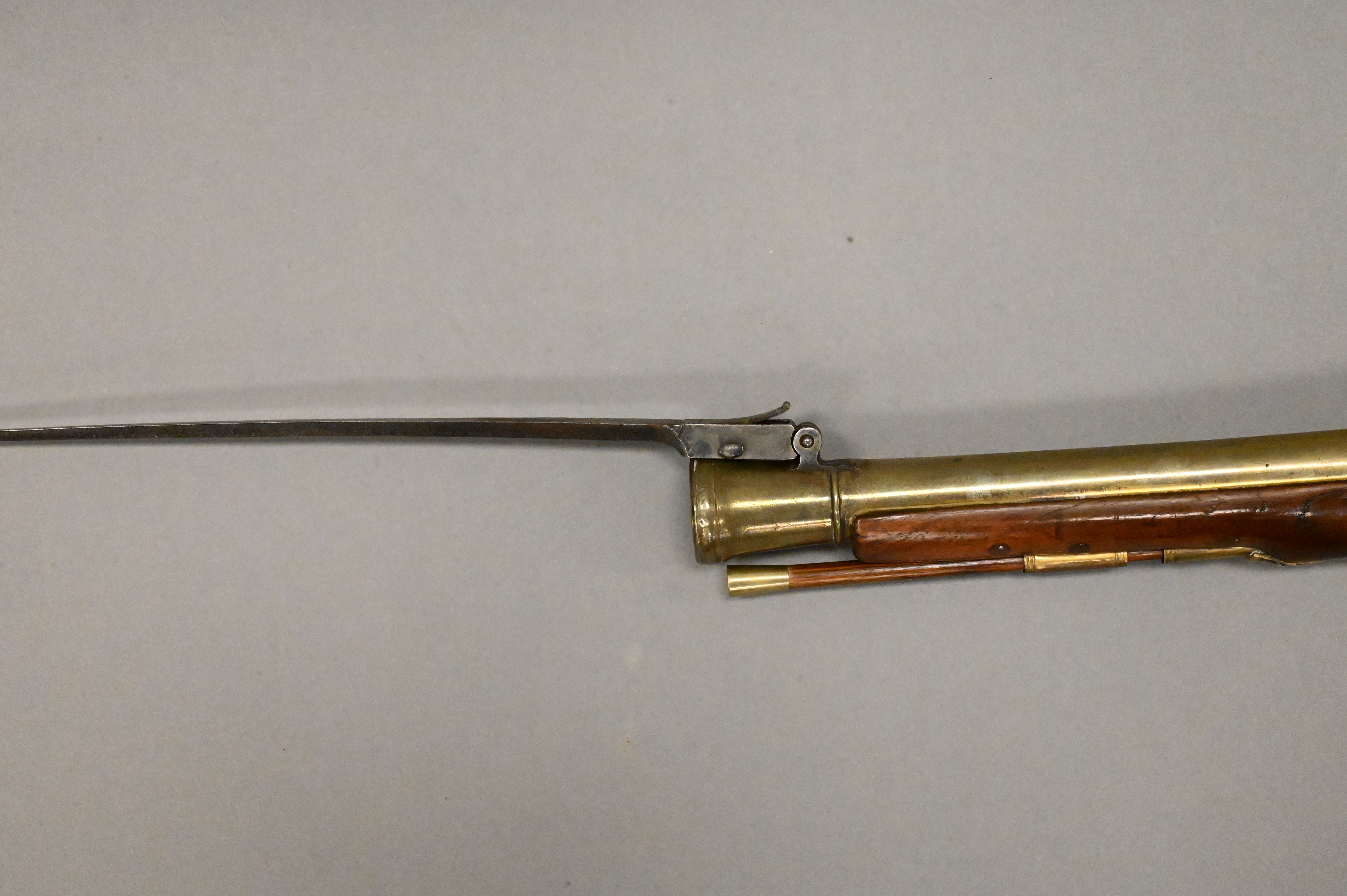 Lot 199: Blunderbuss having Brass Barrel and Butt with Walnut Stock and Bayonet