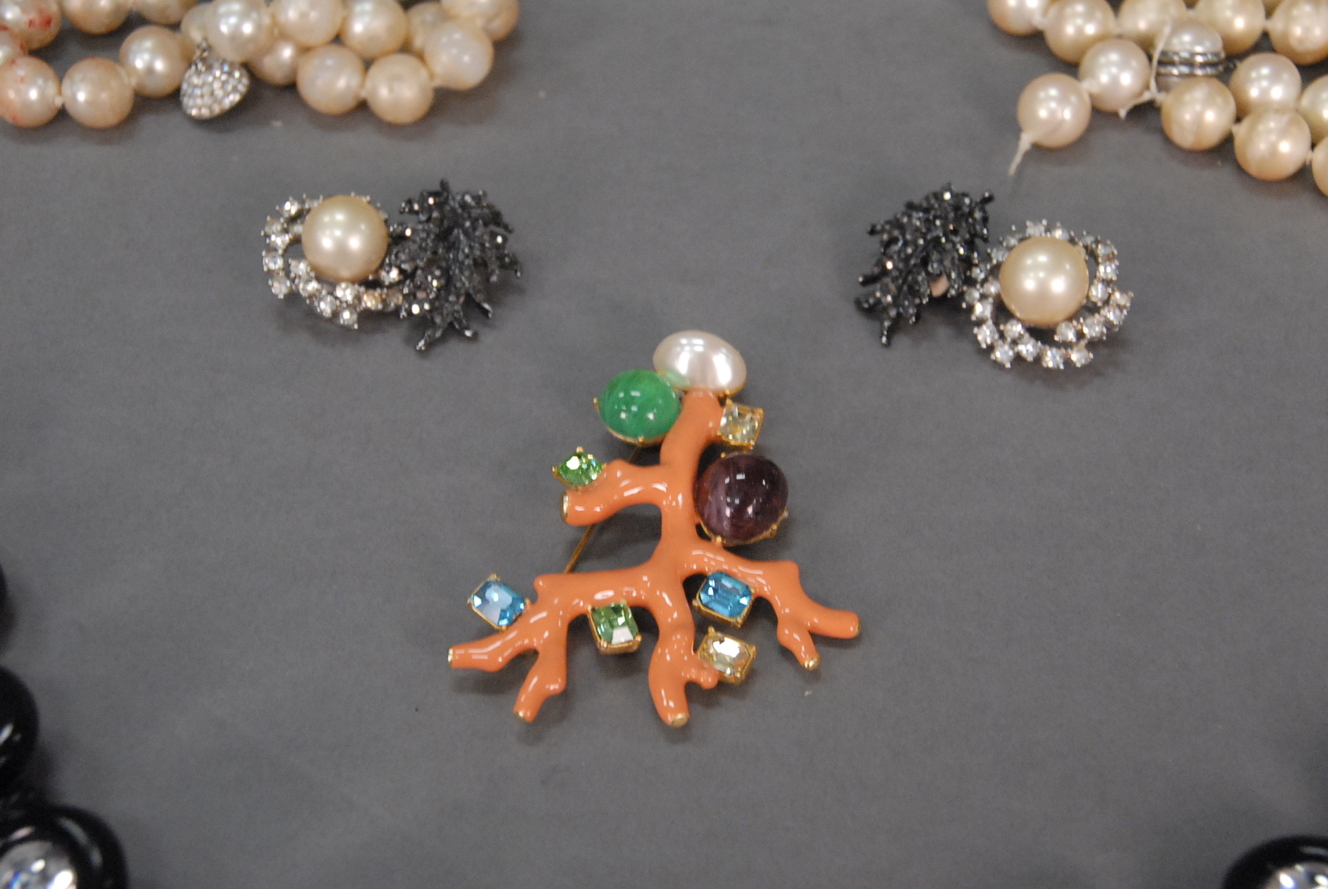 Box lot of Kenneth Lane jewelry to include pin, earrings, necklaces.