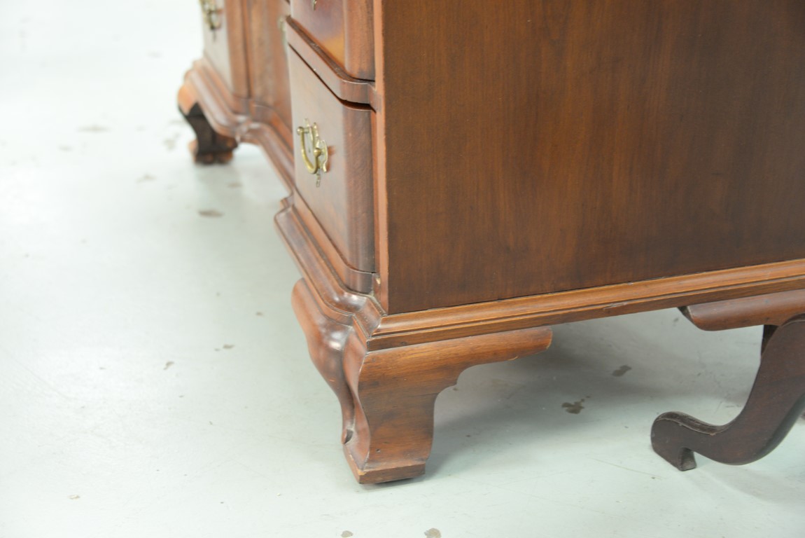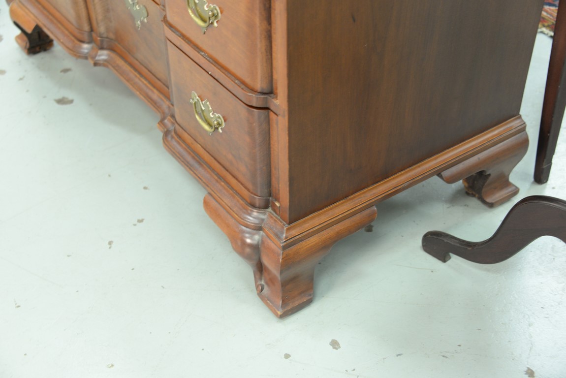 Cherry Chippendale chest having rectangular top over triple shell carved top drawers over three blocked front drawer set on ogee feet restored partially made up. ht. 34 3/4 in. case wd. 37 1/4 in. dp. 18 1/2 in.