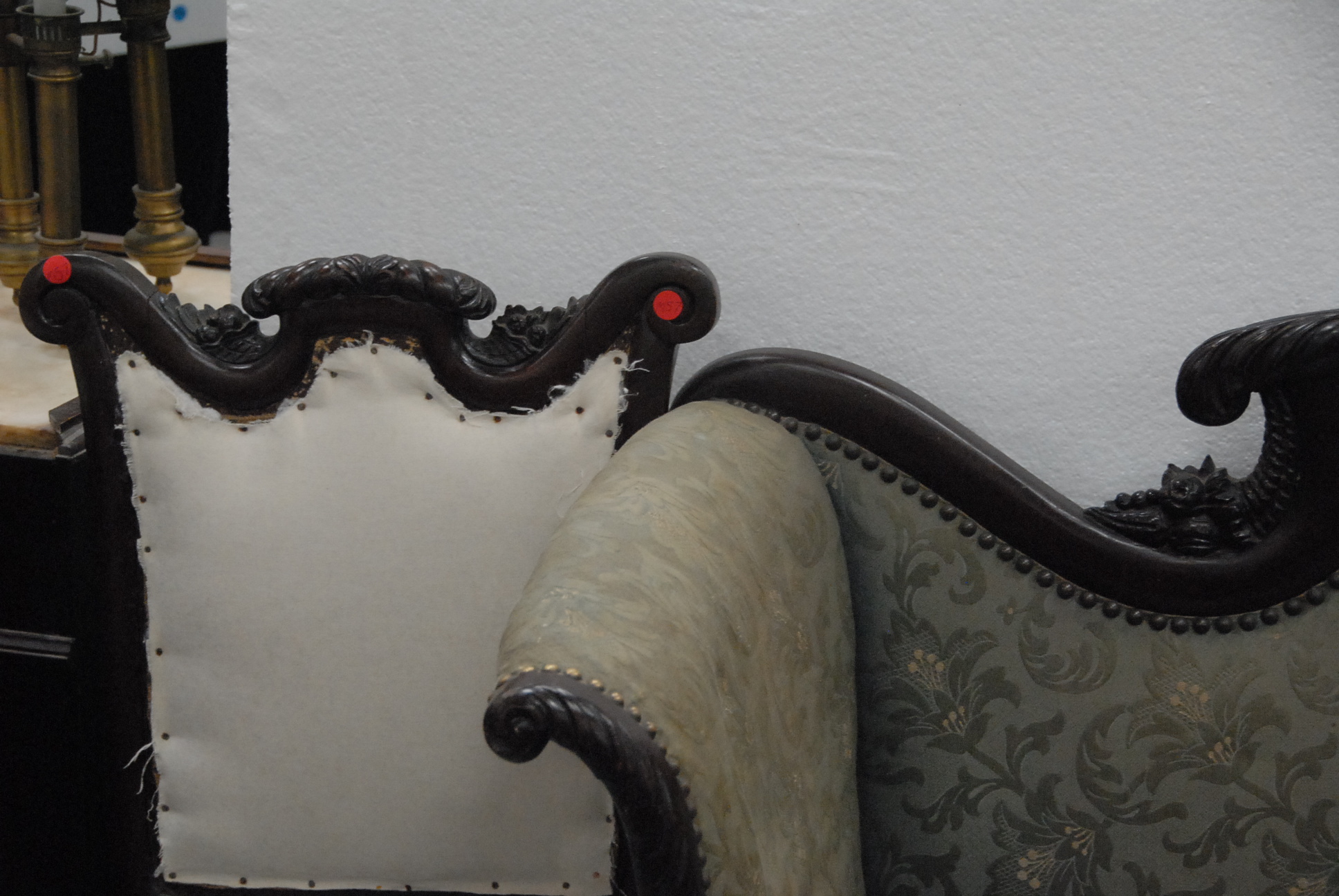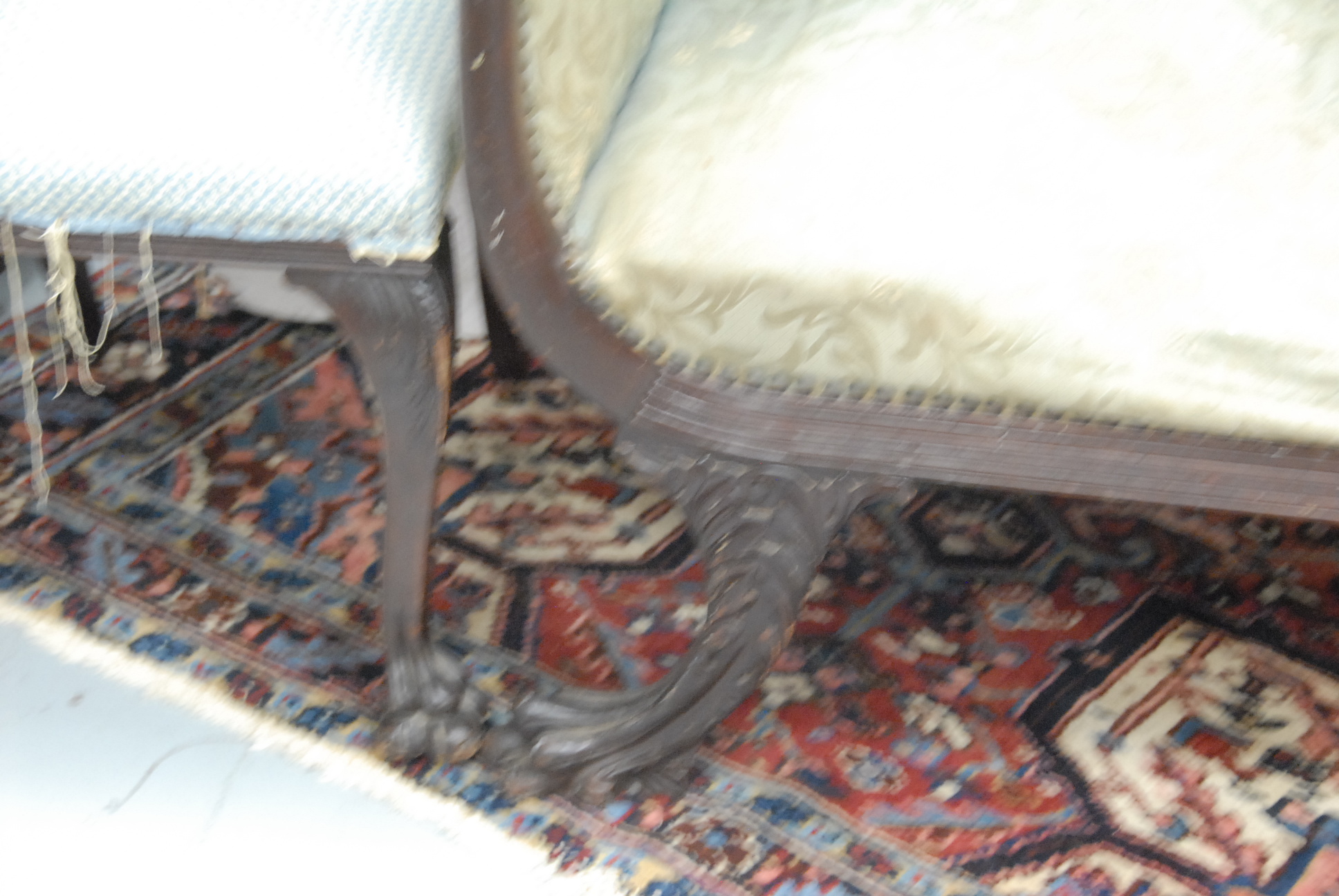 Federal style love seat with paw feet, along with a side chair.