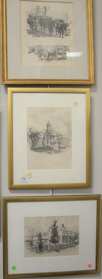 Lot 199: Group of Four Framed Pieces to include two Cornelia Vetter pieces Townsend House, drawing on paper 8 1/2 x 11 and State House Ha…