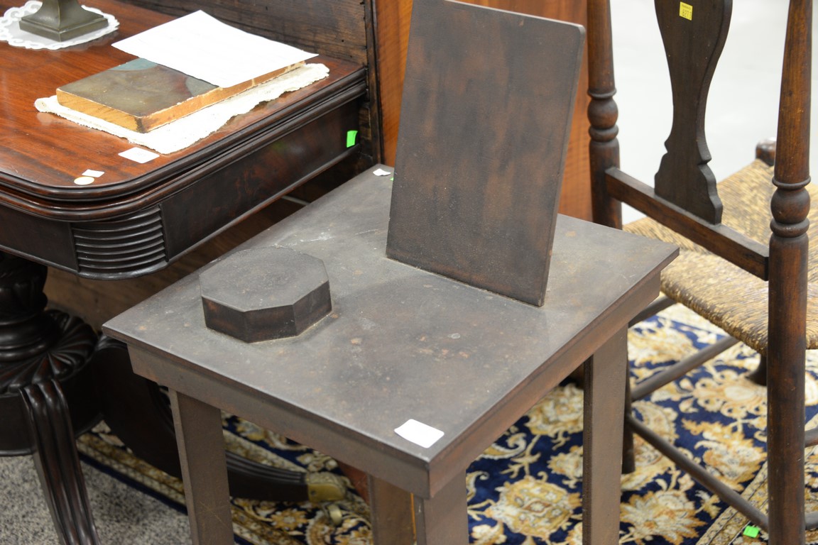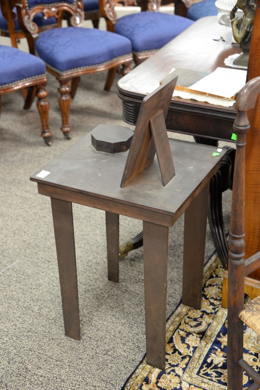 Lot 199: Iron sculptural brutalist table with three dimensional picture frame top. height 25 inches, top: 18 x 16