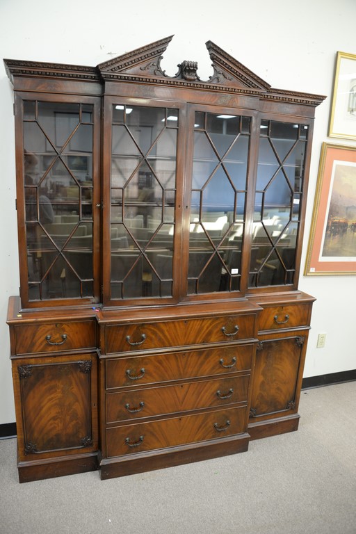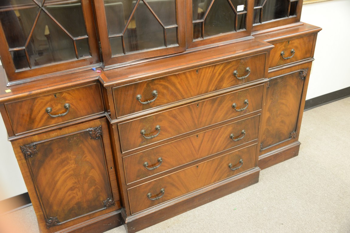 Mahogany two-part breakfront with glazed doors. ht. 87, wd. 66, dp. 19
