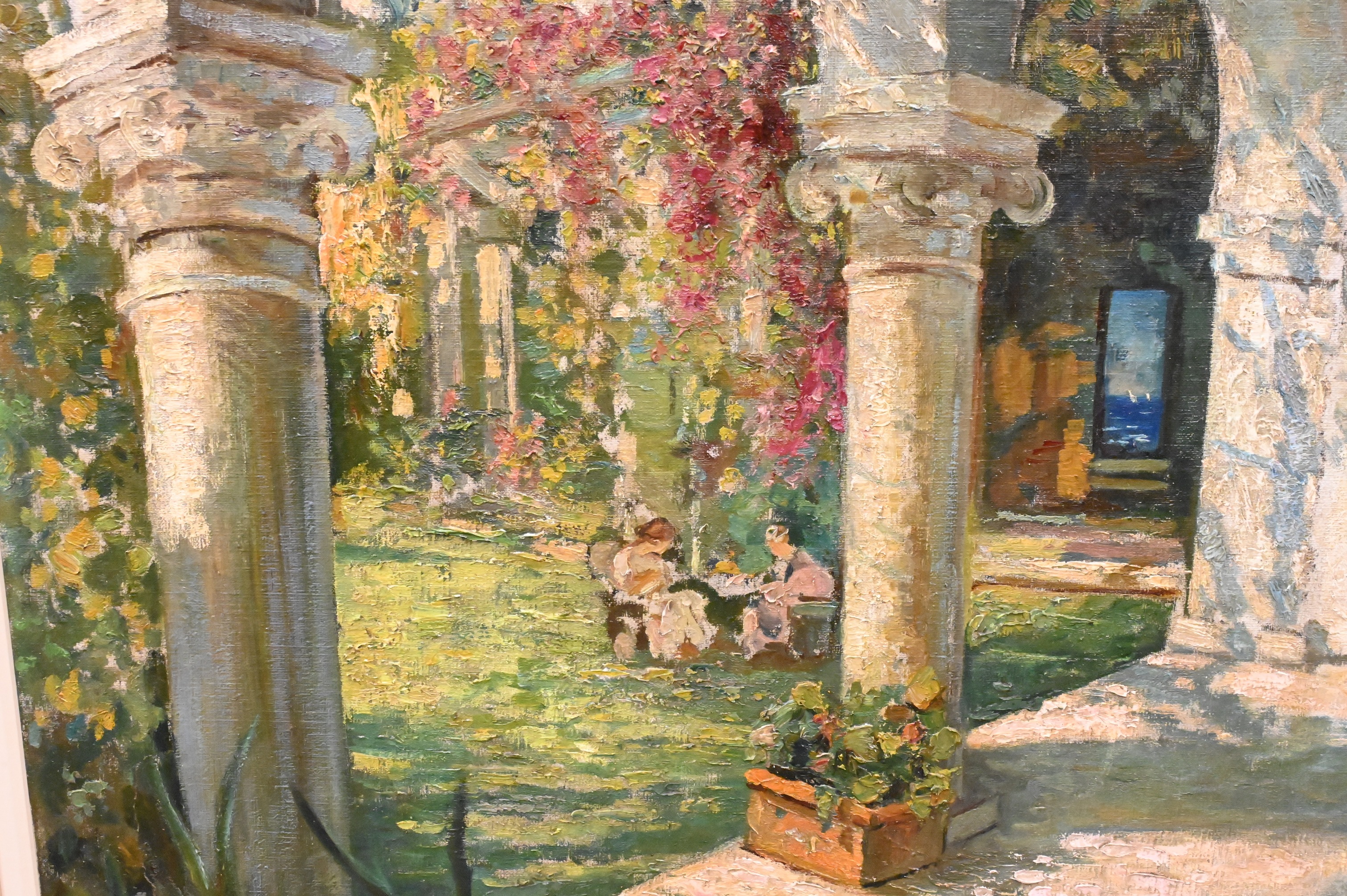 Courtyard Garden Scene with two seated ladies