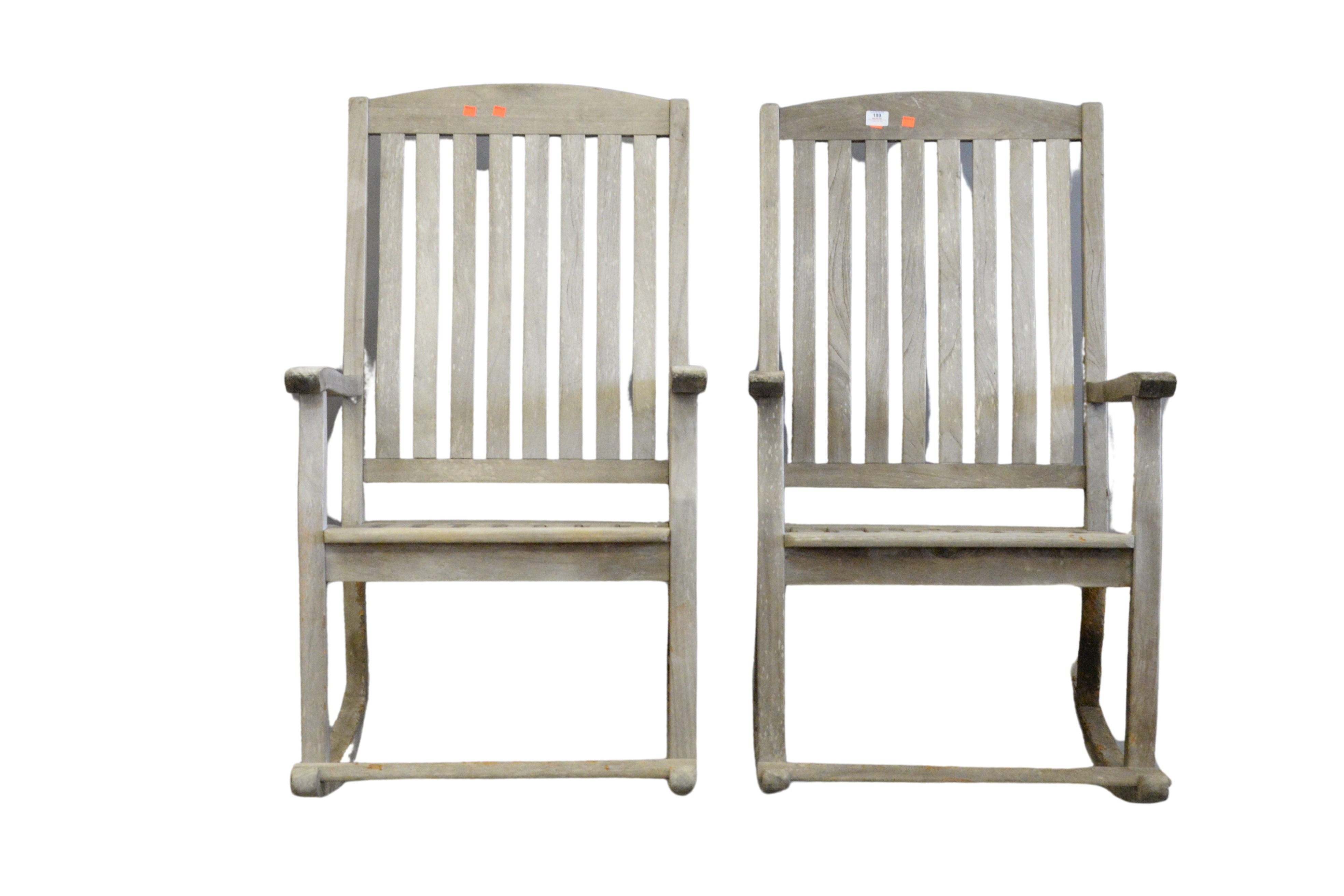 Lot 199: Pair Outdoor Classics Teak Porch Rockers