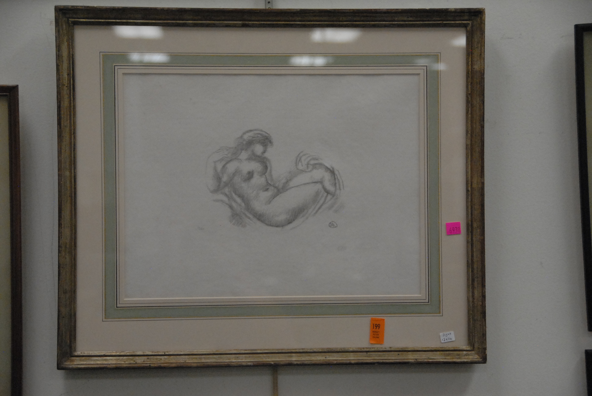 Lot 199: Pencil sketch of nude woman with monogram in pencil M in circle.
